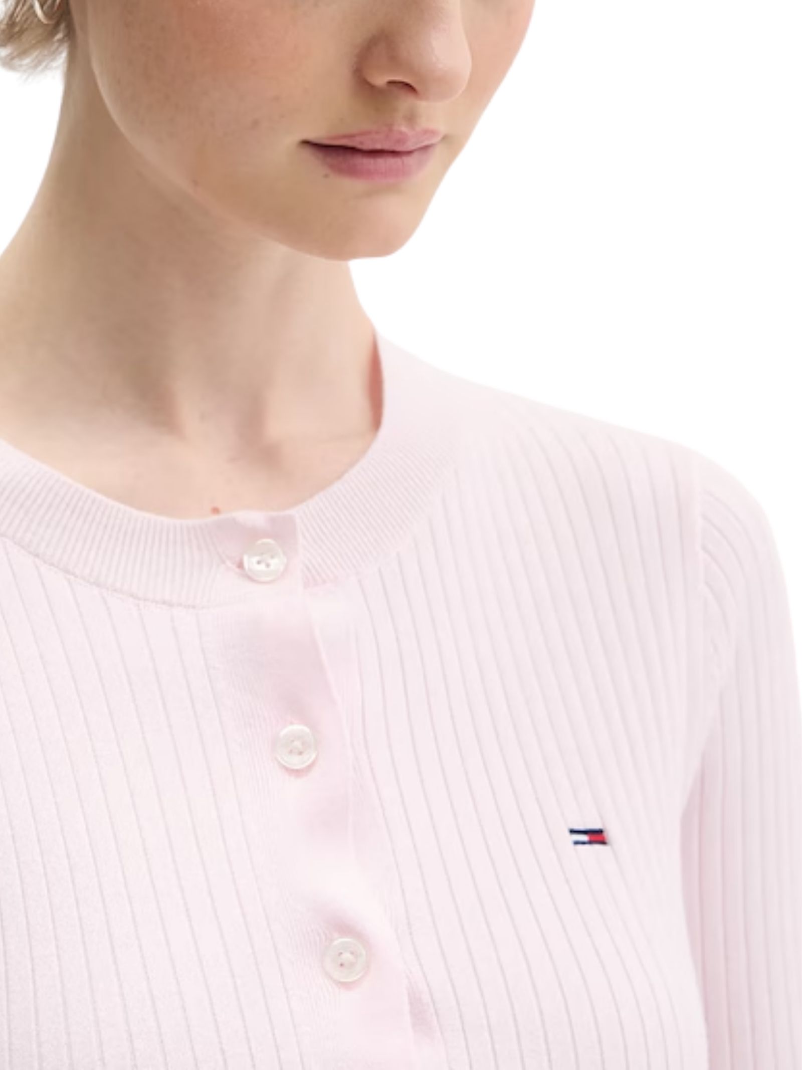 Cardigan in maglia a tinta unita, realizzato in un tessuto estremamente confortevole ad alta percentuale di cotone. La lavorazione a coste conferisce elasticità e una vestibilità aderente e confortevole, mentre la chiusura frontale con bottoni assicura praticità e facilità di utilizzo. Il cotone biologico impiegato è coltivato senza luso di sostanze chimiche dannose, pesticidi o fertilizzanti chimici. Composizione: 65% cotone, 35% poliammide.