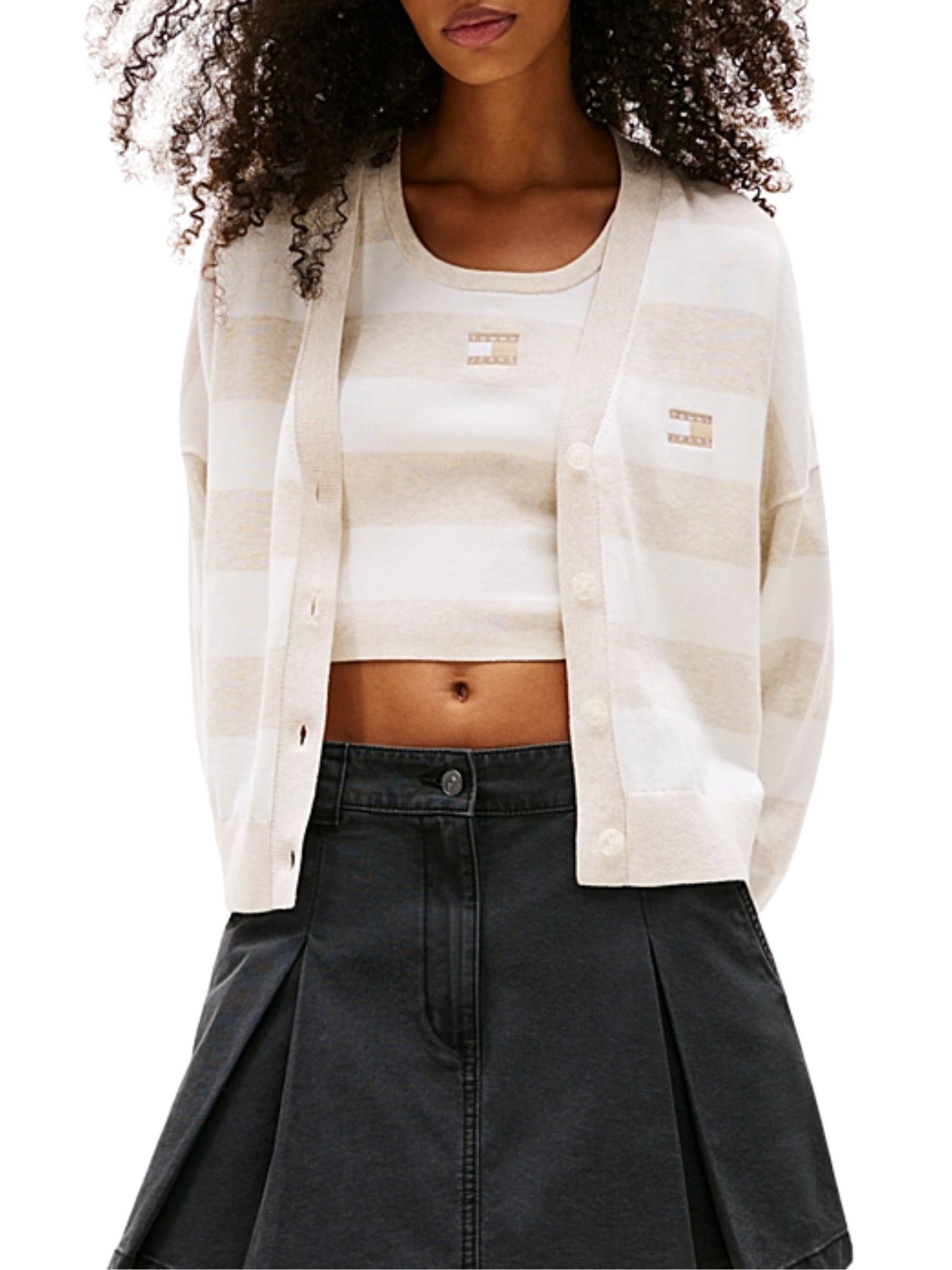 Cardigan Tommy Jeans realizzato in maglia di cotone, con vestibilità comoda e maniche rifinite da polsini elastici. Dotato di pratica chiusura con bottoni per un facile indosso e rimozione. Logo ricamato del brand sul petto. 100%cotone