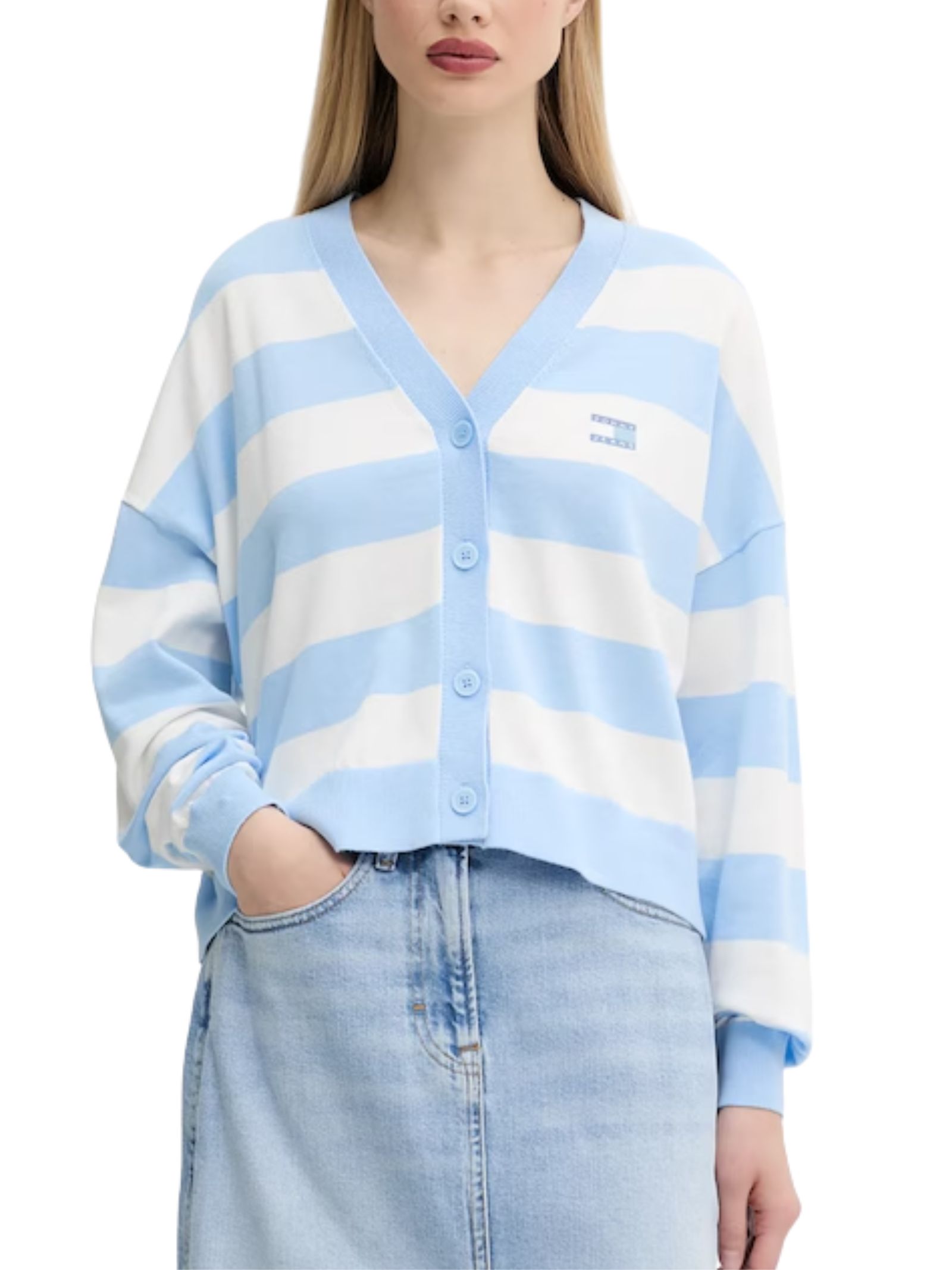 Cardigan Tommy Jeans realizzato in maglia di cotone, con vestibilità comoda e maniche rifinite da polsini elastici. Dotato di pratica chiusura con bottoni per un facile indosso e rimozione. Logo ricamato del brand sul petto. 100%cotone