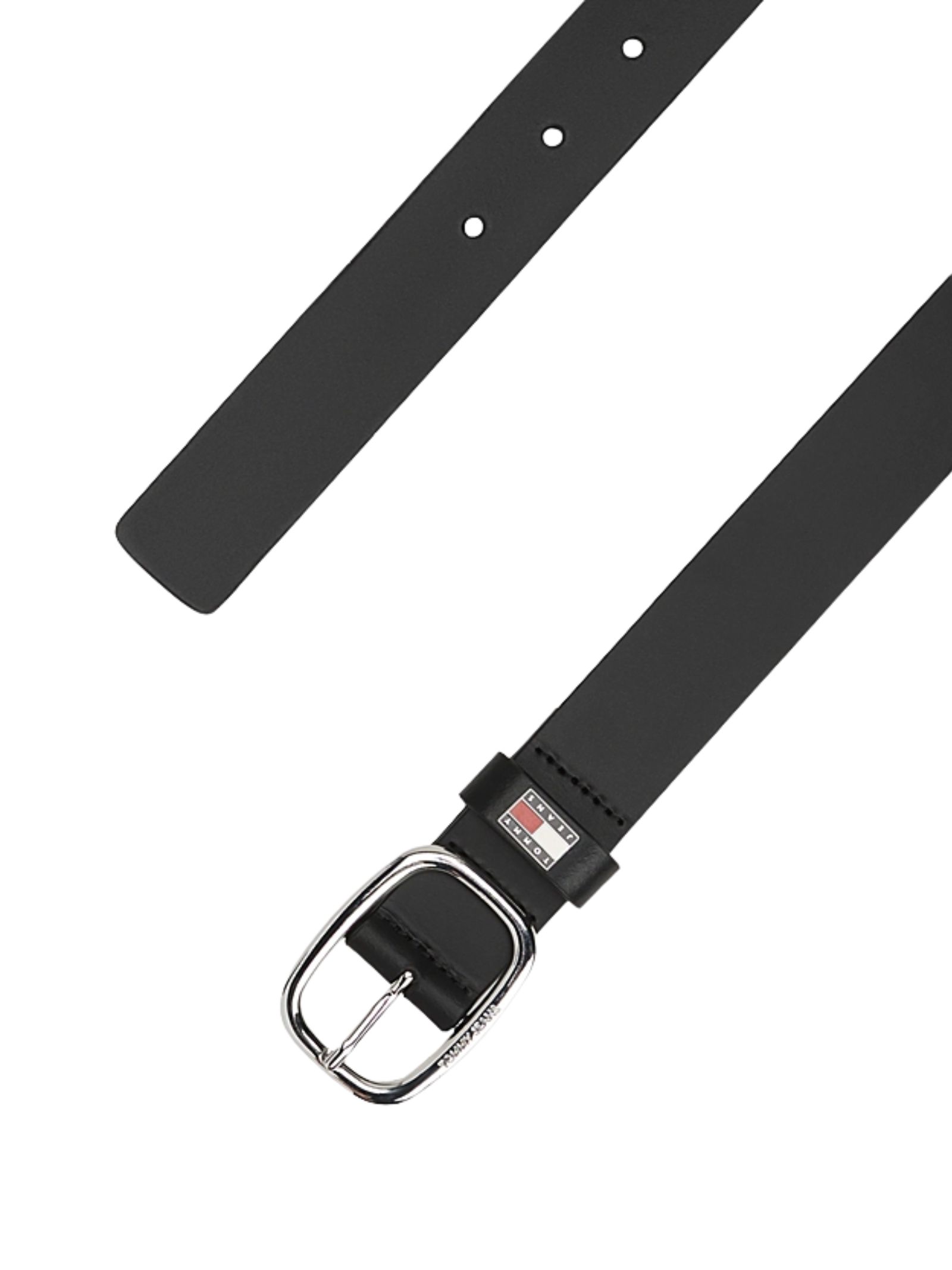 Cintura in pelle liscia con dettagli a impunture, fibbia ovale in metallo con logo in rilievo e placchetta distintivo Tommy sul passante. Larghezza: 3 cm. Composizione: 100% pelle.