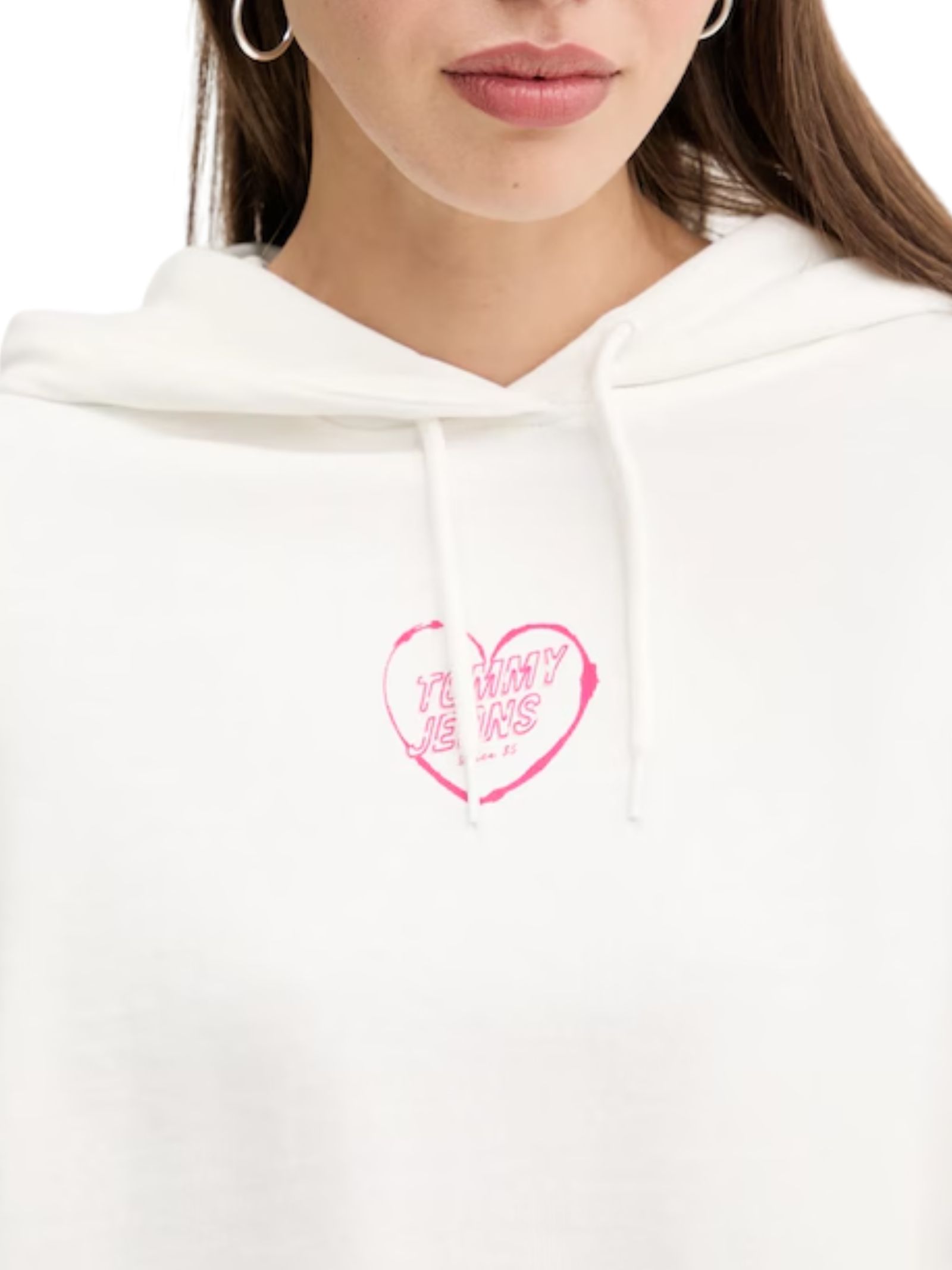 felpa c/stampa cuore,taglio morbido c/cappuccio