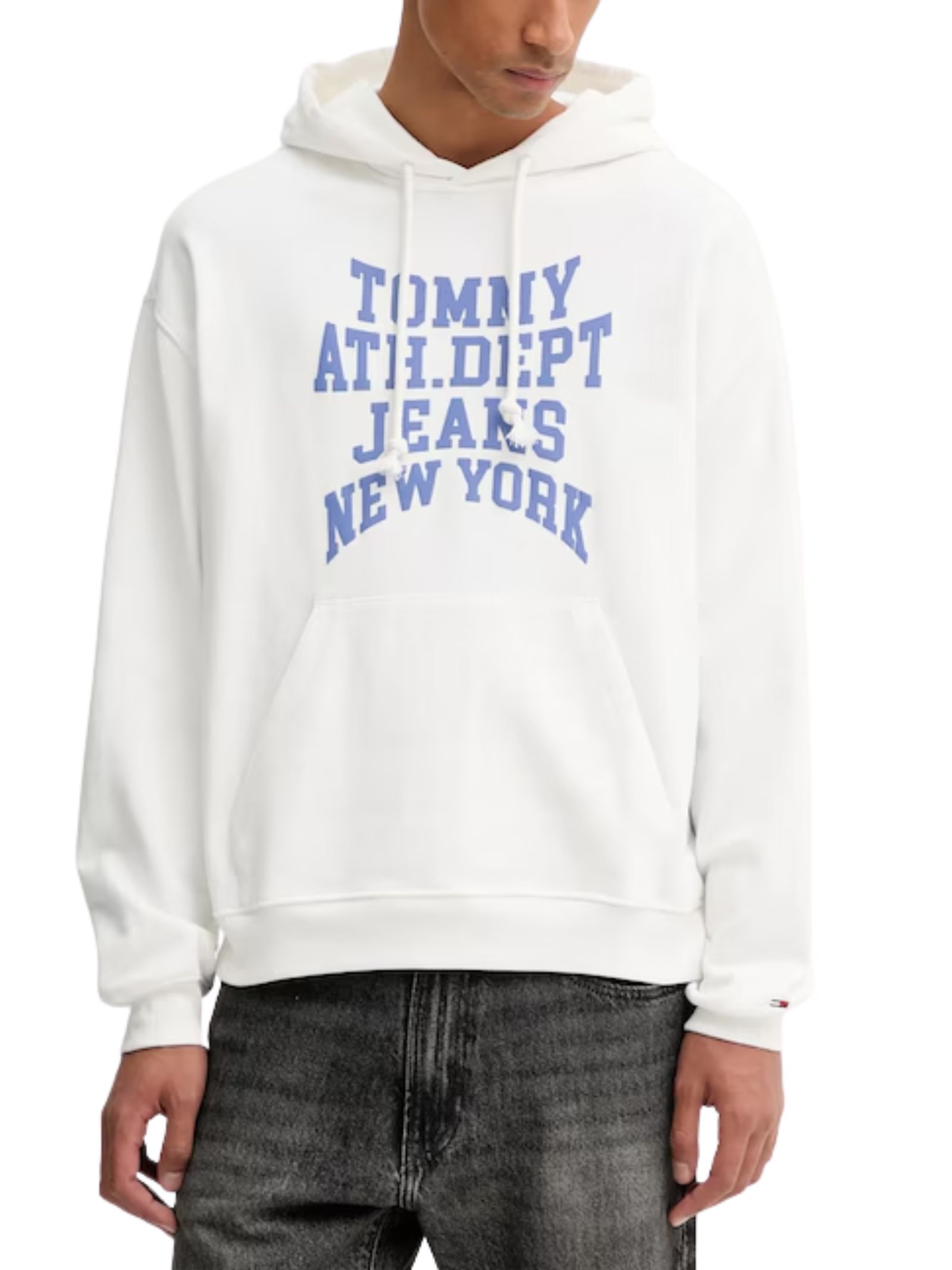 Felpa con cappuccio Tommy Jeans in maglia fine elasticizzata. Presenta un taglio corto e largo per una piena libertà di movimento, cappuccio con cordino per maggiore calore e protezione, maniche lunghe con spalle abbassate, polsini e orlo a coste e una pratica tasca a marsupio sul davanti.