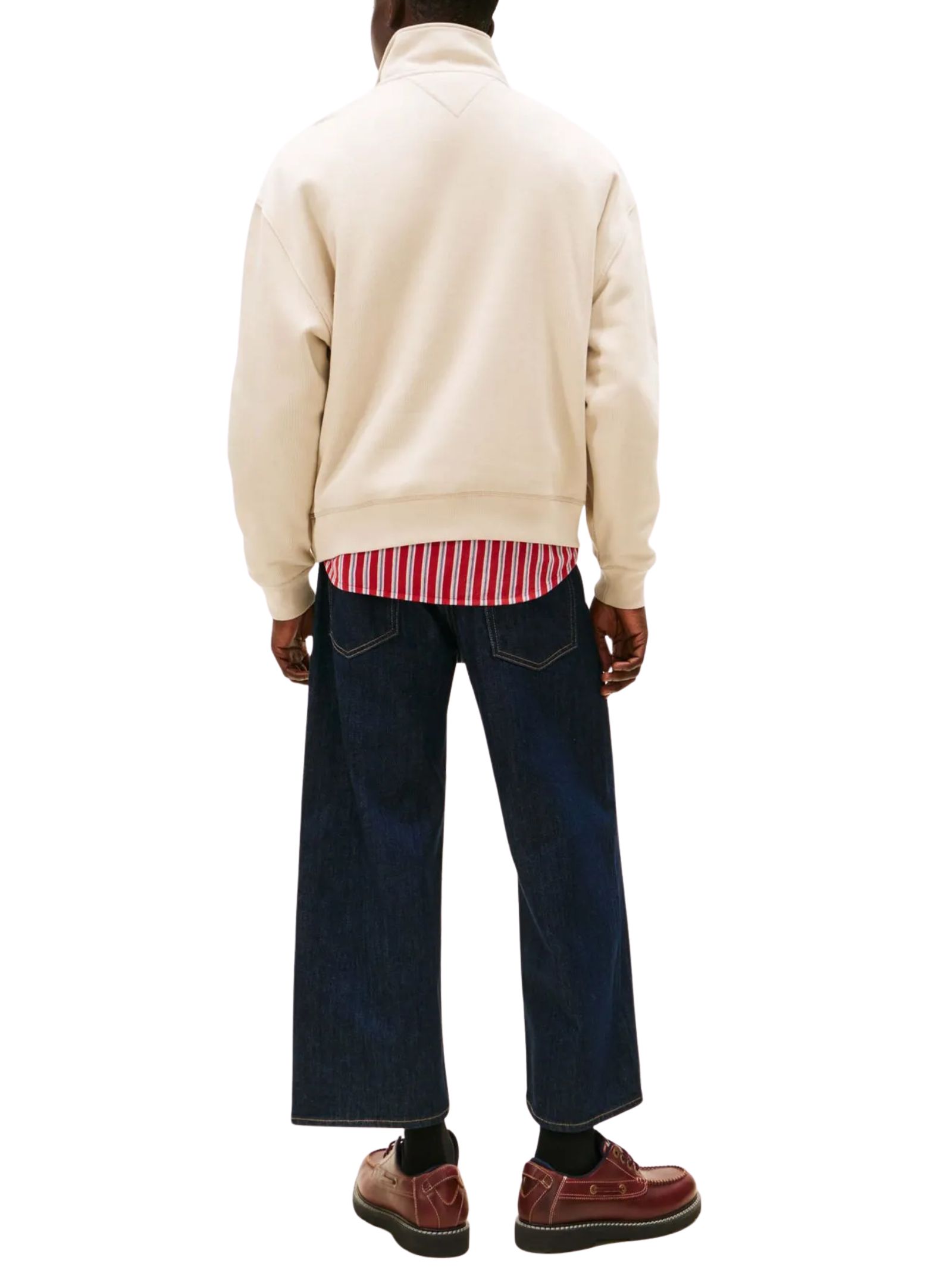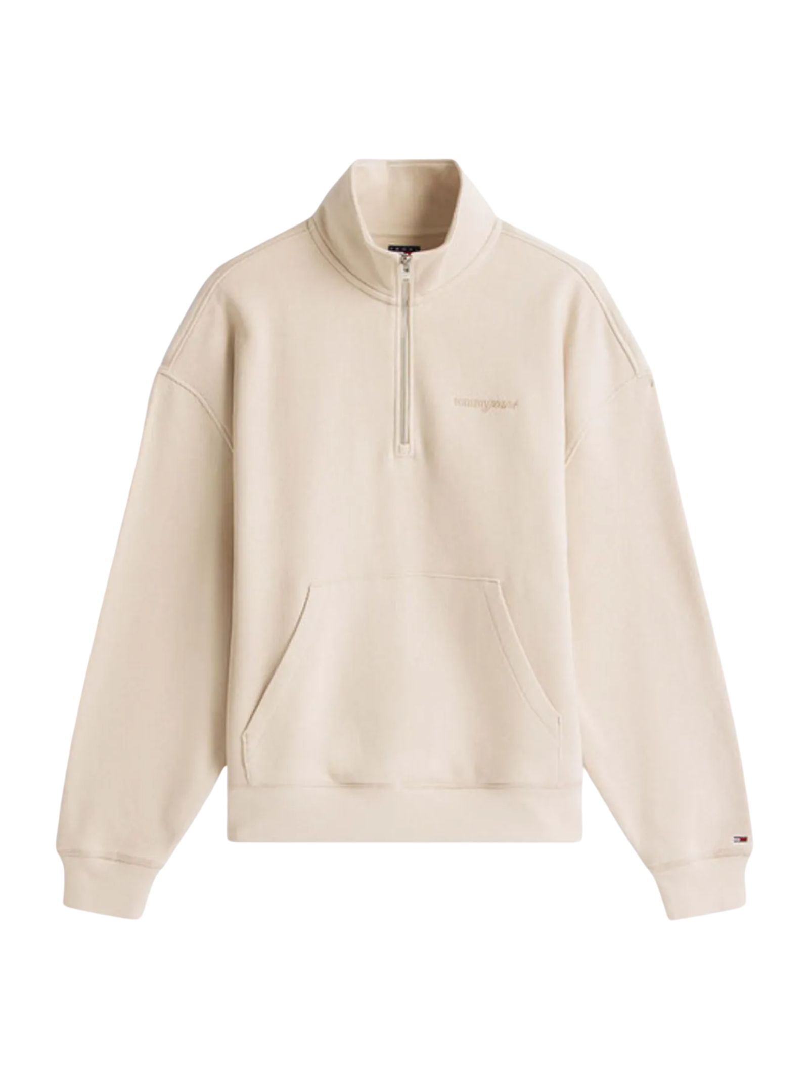 Felpa mezza zip in pile e a costine anni '90 con scritta.Vestibilità relaxed fit. composizione: COTONE RIGENERATO (80%), POLIESTERE RICICLATO (20%)