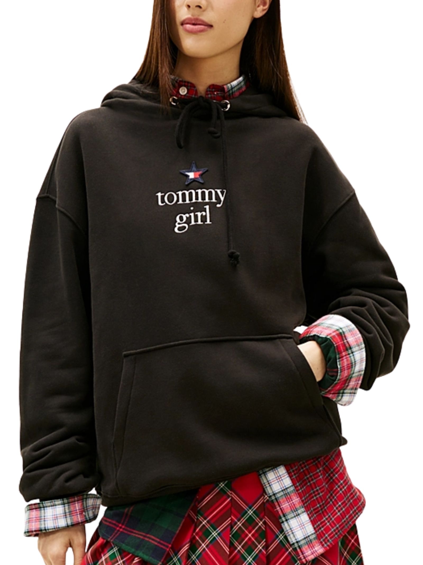 Felpa nera con cappuccio Tommy Girl