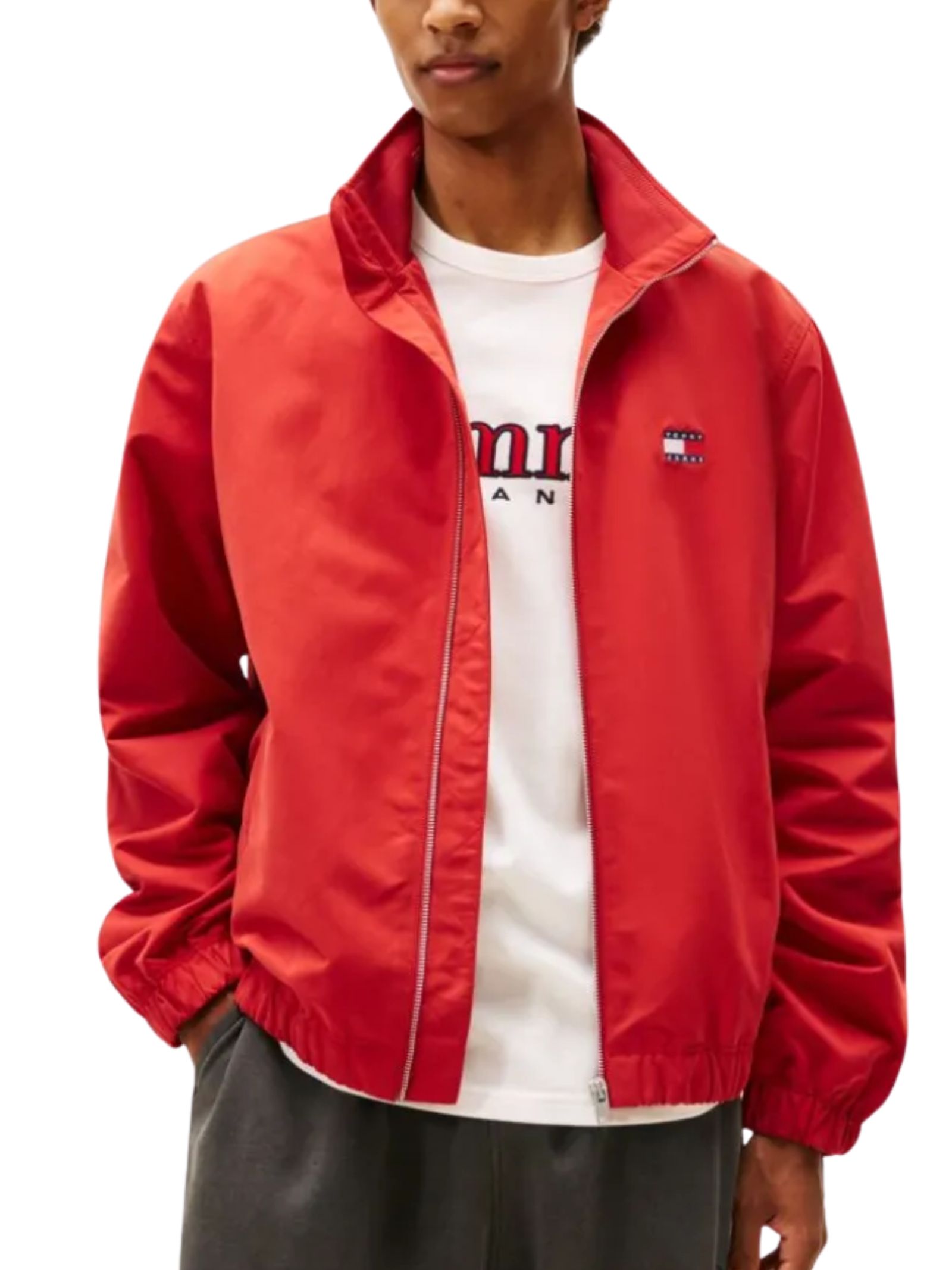 Giacca con cerniera dal design essenziale ideale da indossare a strati quando le temperature scendono, caratterizzata da finitura pesca idrorepellente, collo a imbuto, chiusura zip-through, cintura e polsini elasticizzati, fodera in rete, due tasche anteriori a filetto angolate e una tasca interna a filetto, rifinita da distintivo Tommy sul petto, branding Tommy Jeans e logo allinterno del colletto, vestibilità regolare. Composizione: 100% poliestere, fodera in poliestere.