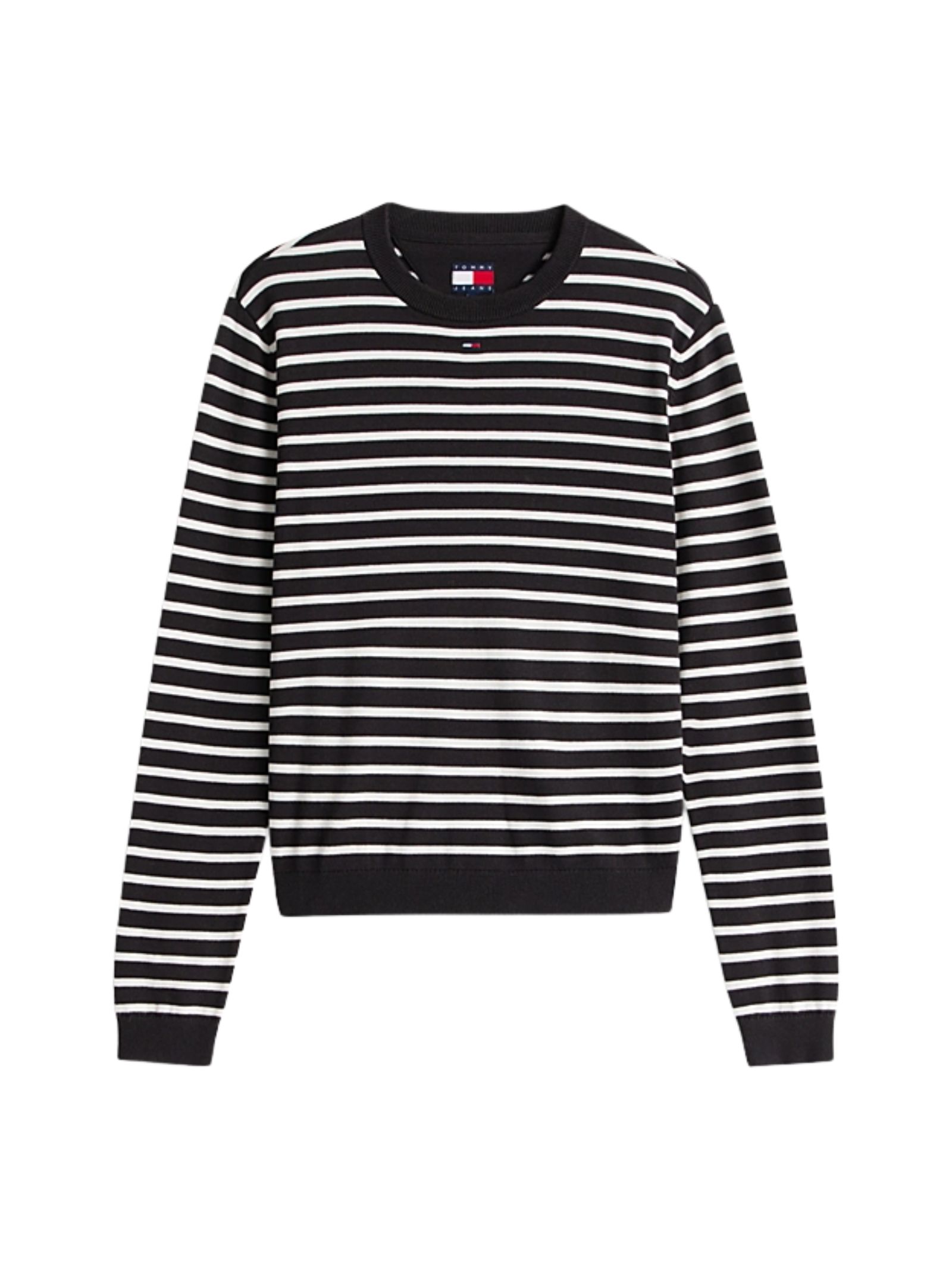 Pullover Tommy Jeans girocollo realizzato in puro cotone pettinato, caratterizzato da vestibilità regolare, scollatura rotonda, collo, polsini e fondo a costine e bandierina Tommy ricamata al centro con branding Tommy Jeans per un look essenziale e versatile. Composizione: 100% cotone.