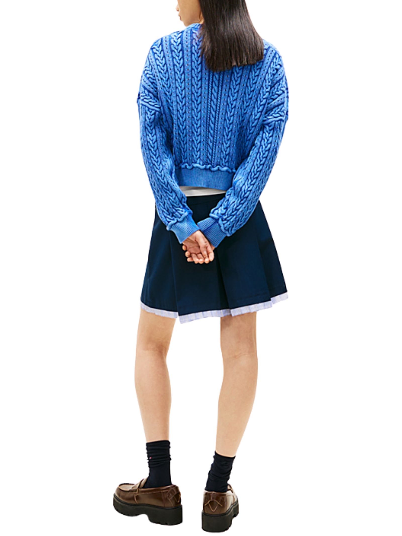 Maglione a trecce con logo dal design traforato, che dona un tocco di leggerezza e traspirabilità, stampa classica brand Tommy Jeans e vestibilità regular per un comfort quotidiano senza rinunciare allo stile, lunghezza classica, ideale per comletare look freschi ed estivi. Composizione: 100% cotone.