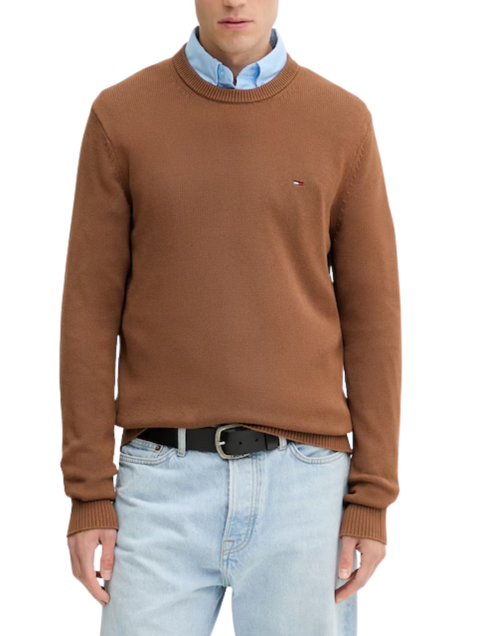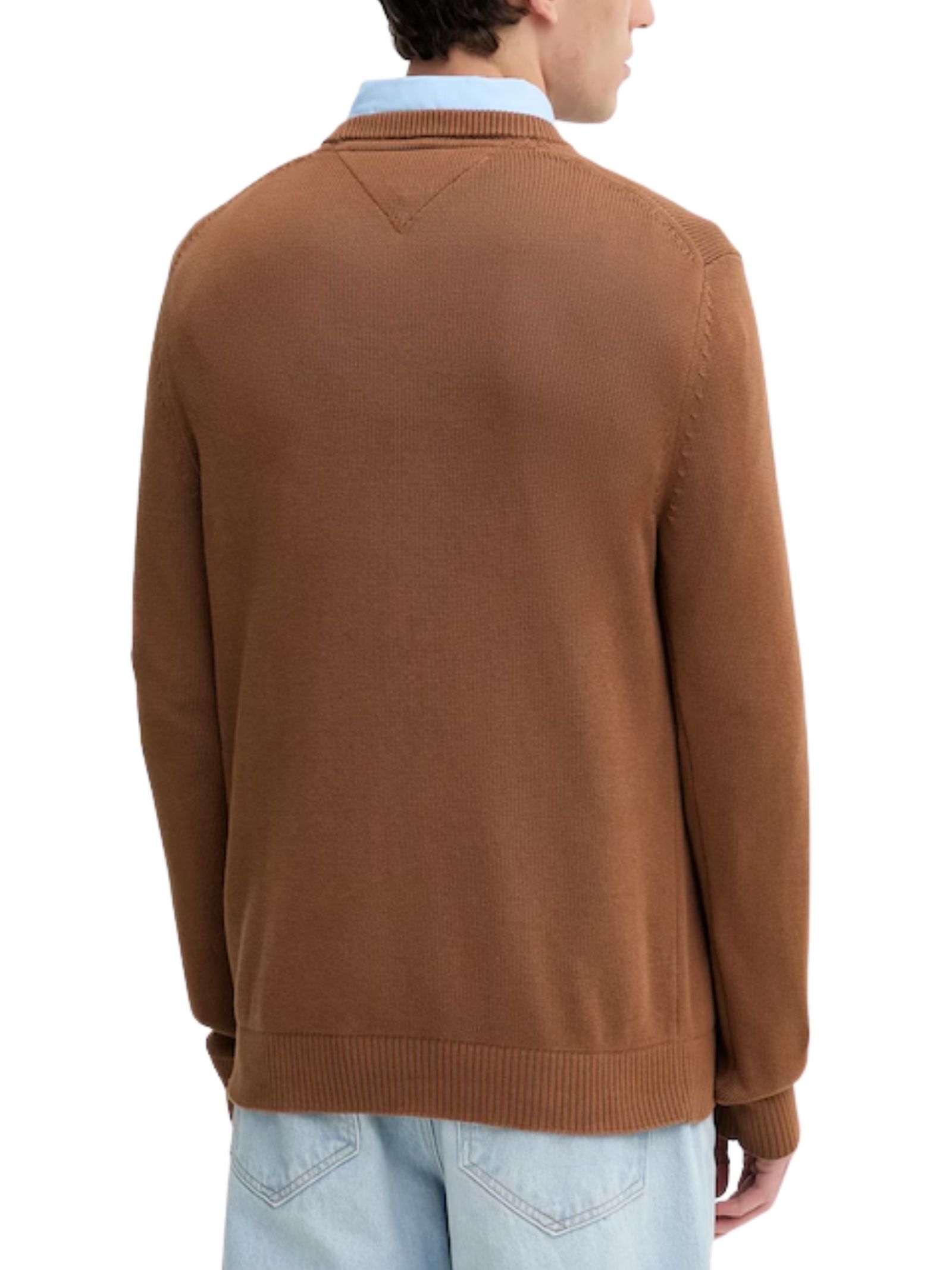 Pullover nocciola in puro cotone lavorato a maglia con girocollo, collo, polsini e fondo a coste; decorato con patch bandierina e branding Tommy Jeans per un look intramontabile. 100% cotone