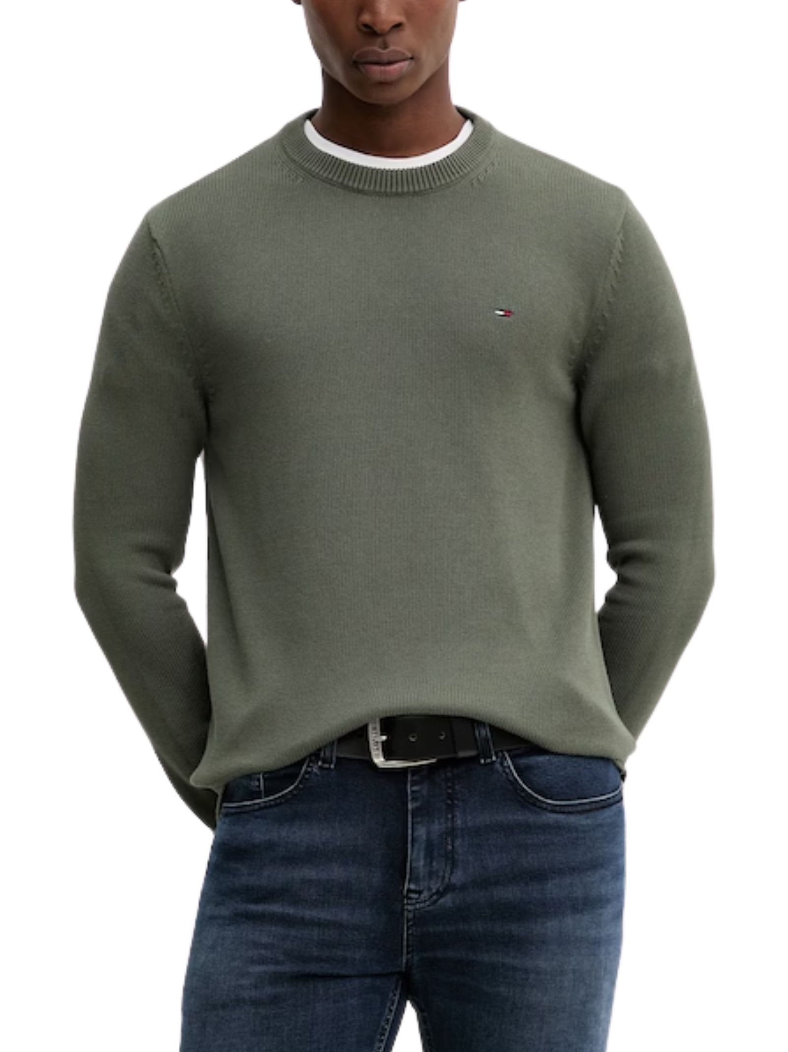 Pullover verde in puro cotone lavorato a maglia con girocollo, collo, polsini e fondo a coste; decorato con patch bandierina e branding Tommy Jeans per un look intramontabile. 100% cotone