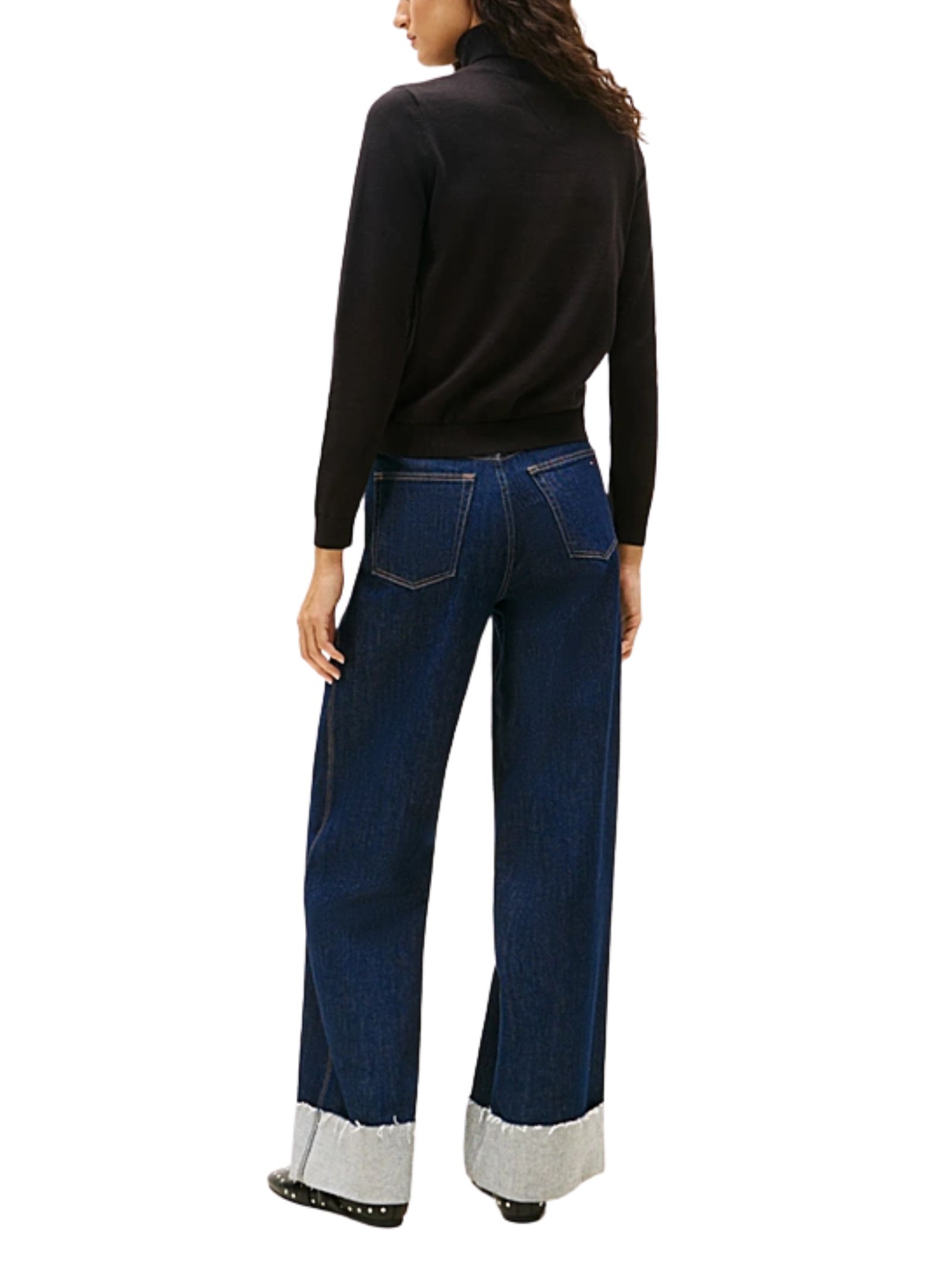Pullover nero Tommy Jeans in puro cotone pettinato con collo dolcevita, fondo e polsini a coste, patch bandierina sul petto e branding distintivo. Vestibilità slim. Composizione: 100% cotone.