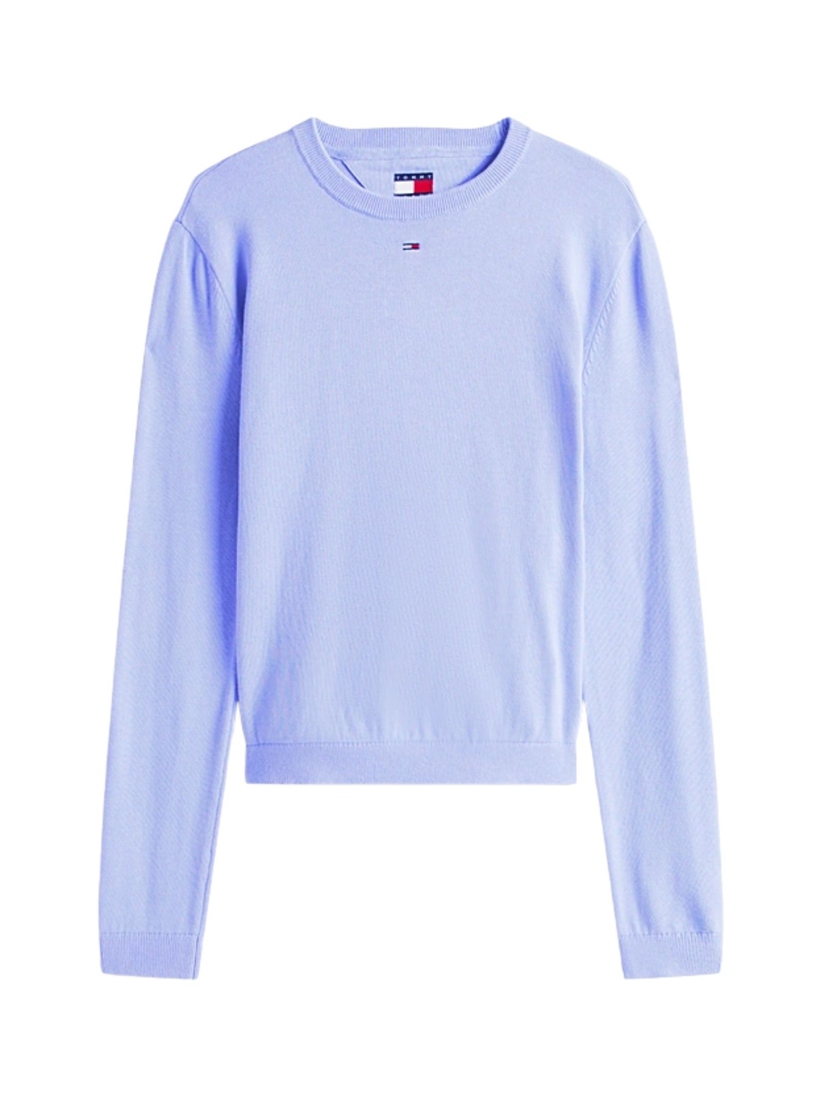 Pullover iris Tommy Jeans in puro cotone pettinato con girocollo, collo, polsini e fondo a coste, bandierina ricamata sul petto e branding distintivo. Vestibilità regular. Composizione: 100% cotone.