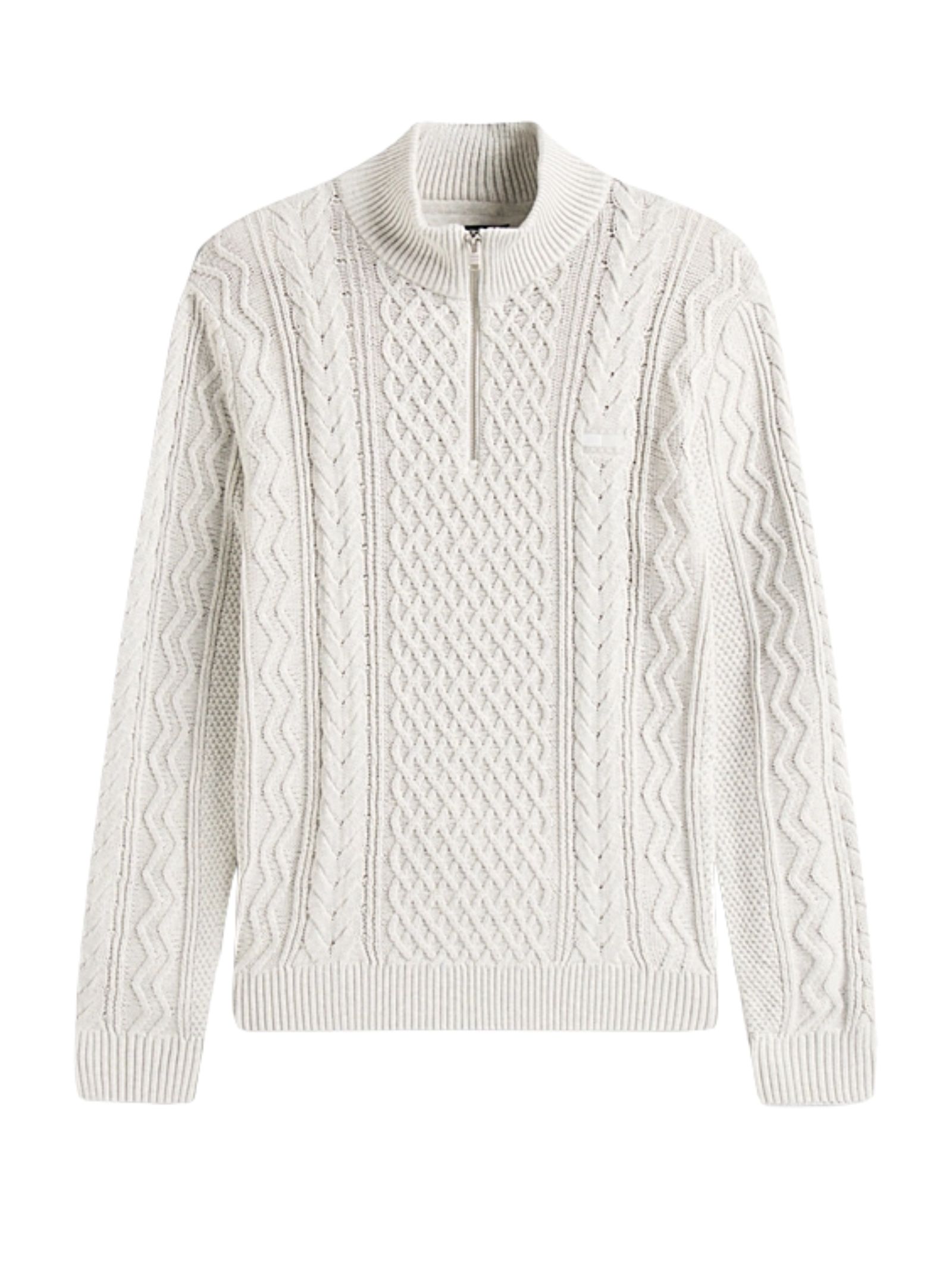 Pullover grigio in maglia intrecciata in puro cotone con collo a lupetto e mezza zip, dal taglio slim fit che unisce stile heritage e ispirazione sportiva; finiture a coste su collo, polsini e fondo, distintivo Tommy tono su tono sul petto e branding Tommy Jeans; 100% cotone.