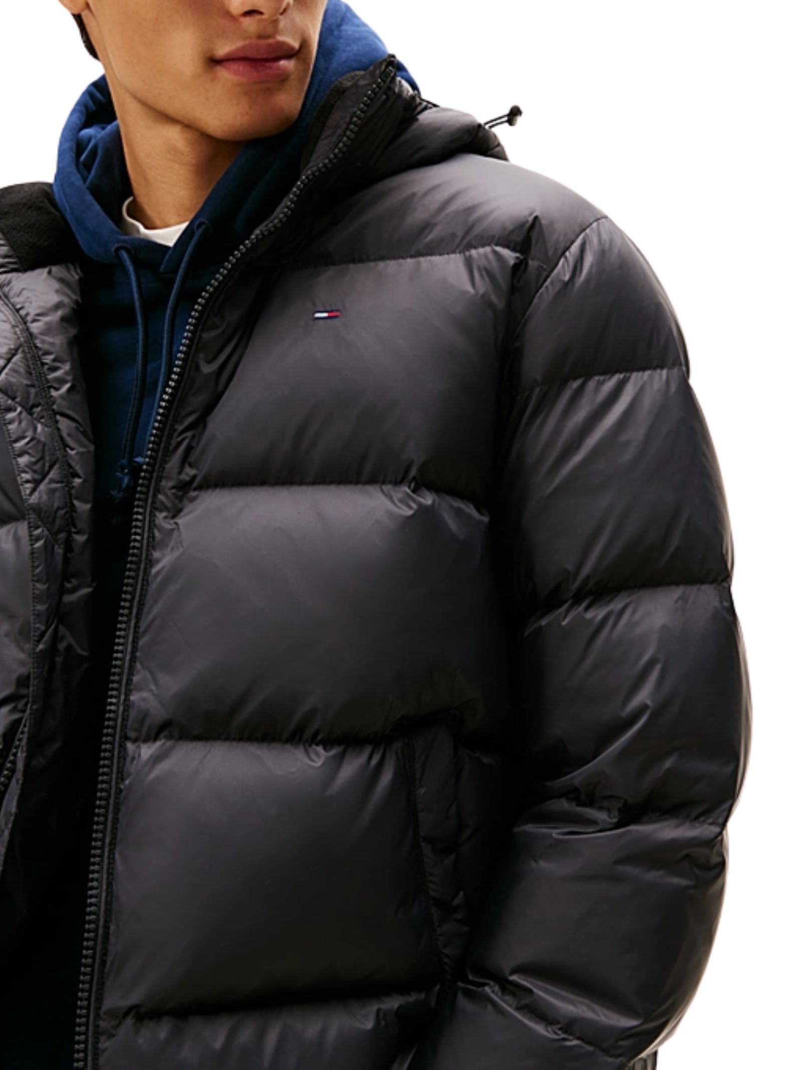 Piumino Tommy Jeans con finitura idrorepellente e imbottitura in piuma per un comfort lussuoso. Realizzato in nylon, con cappuccio rimovibile, zip integrale, polsini elastici, due tasche a filetto frontali e una interna. Logo e bandierina ricamata sul petto. Vestibilità regular. Composizione: 100% nylon, imbottitura in piuma.
