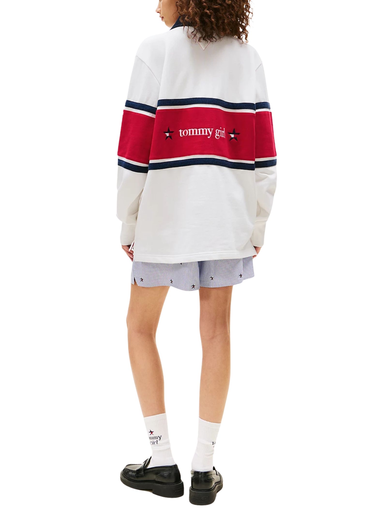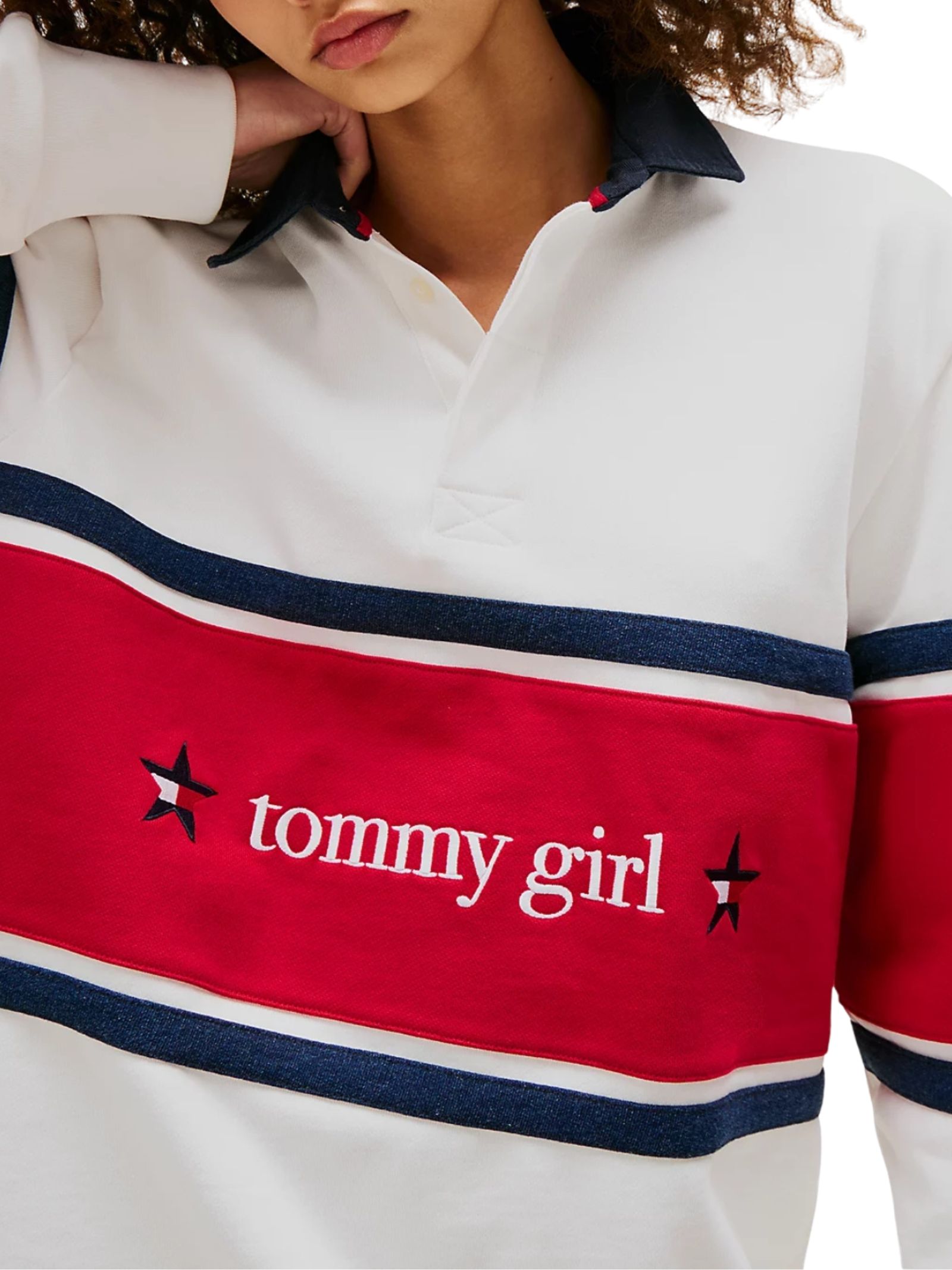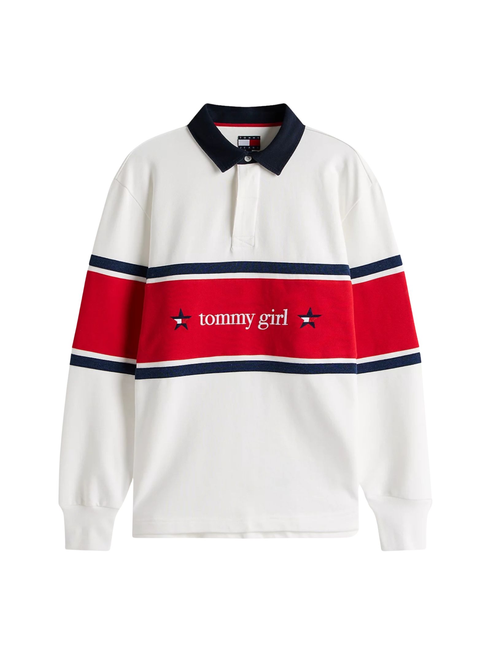 La polo rugby casual Tommy Girl unisce lo stile iconico degli anni 90 a un design contemporaneo, distinguendosi per il vivace logo con stelle sul davanti e sul retro. Realizzata in puro cotone con righe rugby, presenta colletto a contrasto, abbottonatura nascosta, polsini a coste e branding Tommy Girl. Vestibilità relaxed fit con spalle scese e modello gender inclusive. Composizione: 100% cotone.