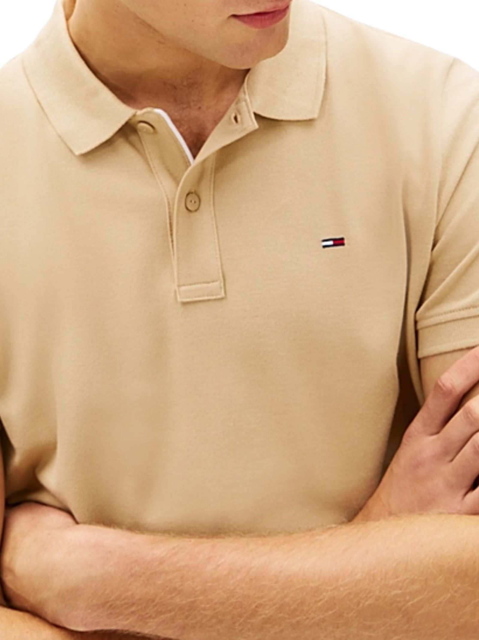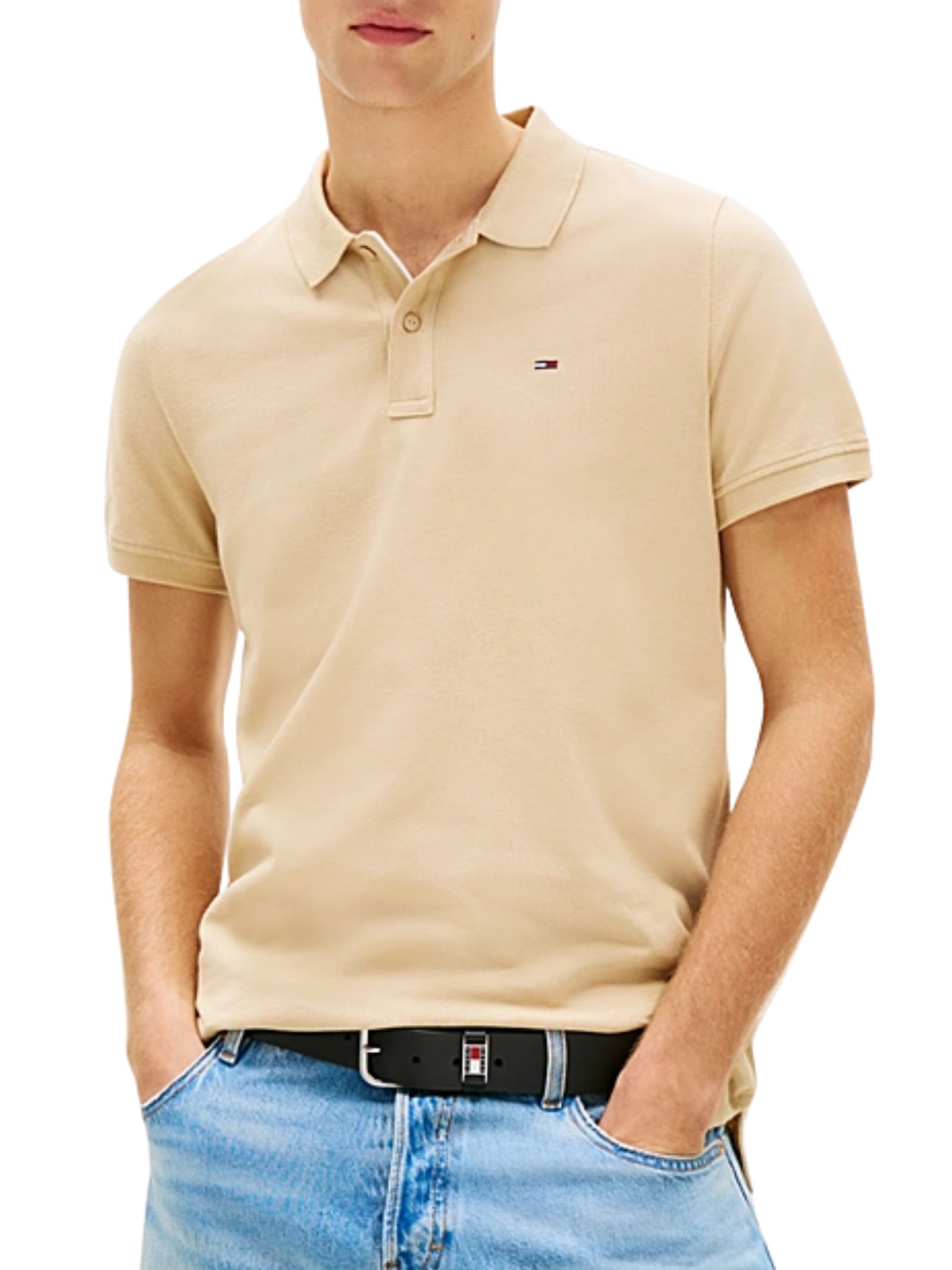 Polo in piqué di puro cotone, colletto con lavorazione strutturata, chiusura a due bottoni e dettaglio di logo sull'abbottonatura e bandierina Tommy ricamata sul petto;vestibilità slim fit. Composizione: 100% cotone.