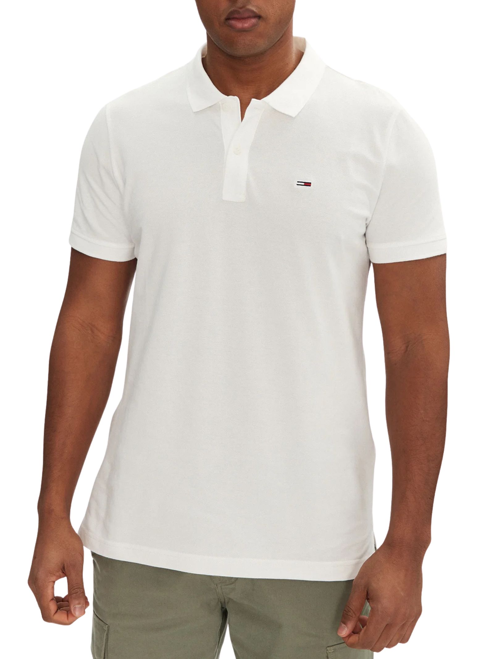 Polo in piqué di puro cotone, colletto con lavorazione strutturata, chiusura a due bottoni e dettaglio di logo sull'abbottonatura e bandierina Tommy ricamata sul petto;vestibilità slim fit. Composizione: 100% cotone.