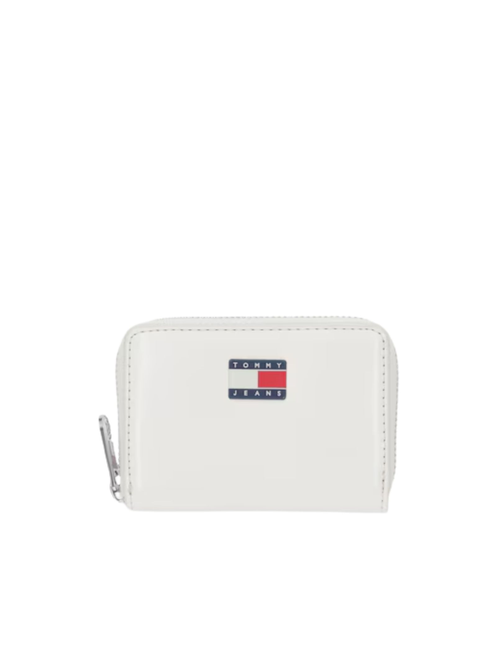 Portafoglio piccolo panna Tommy Jeans in pelle sintetica con chiusura a zip. Senza scomparti per banconote, include una tasca interna per una carta scorrevole. Fodera inclusa. Dimensioni: 11 cm x 8 cm. Composizione 100% Poliuretano