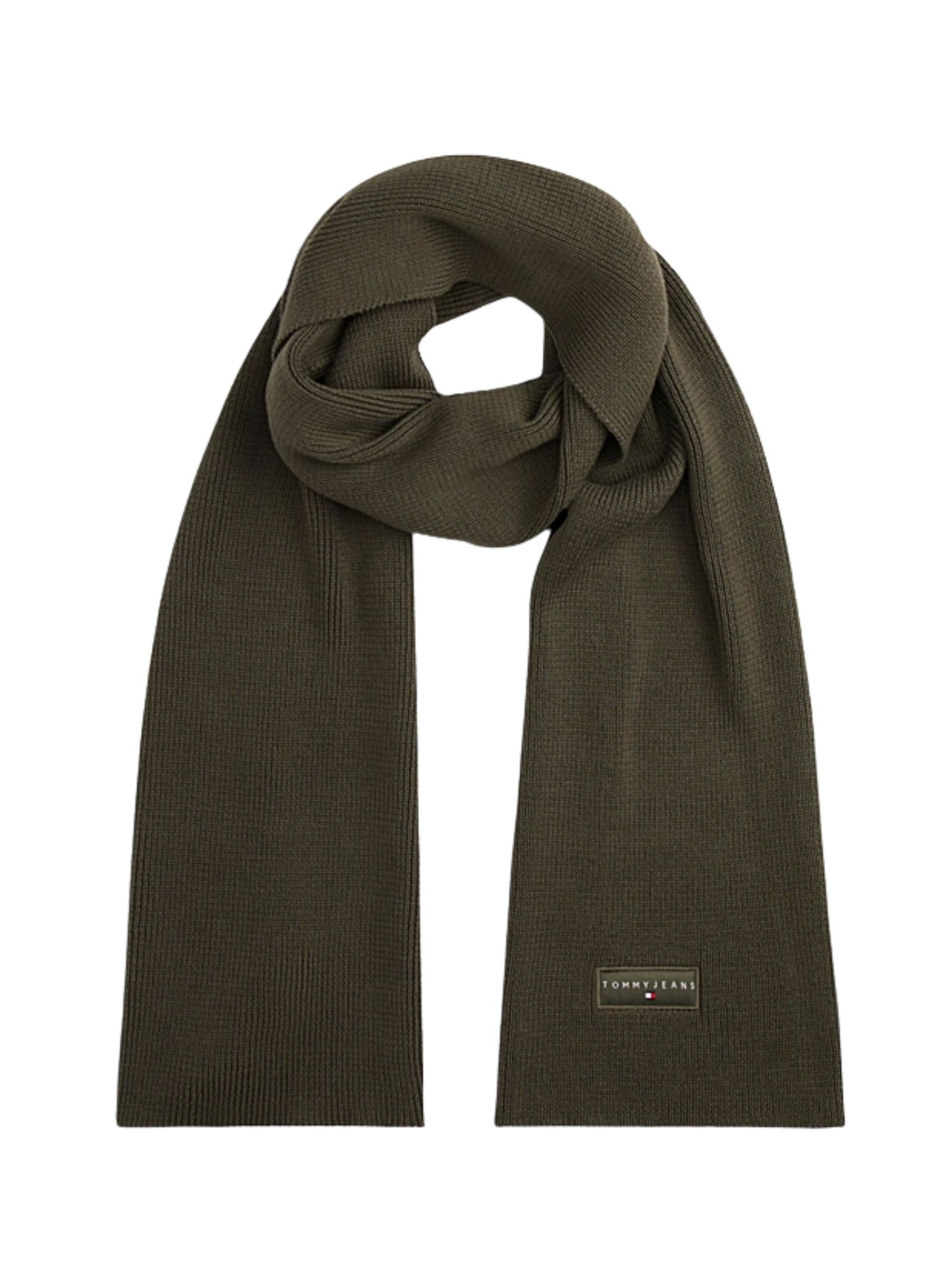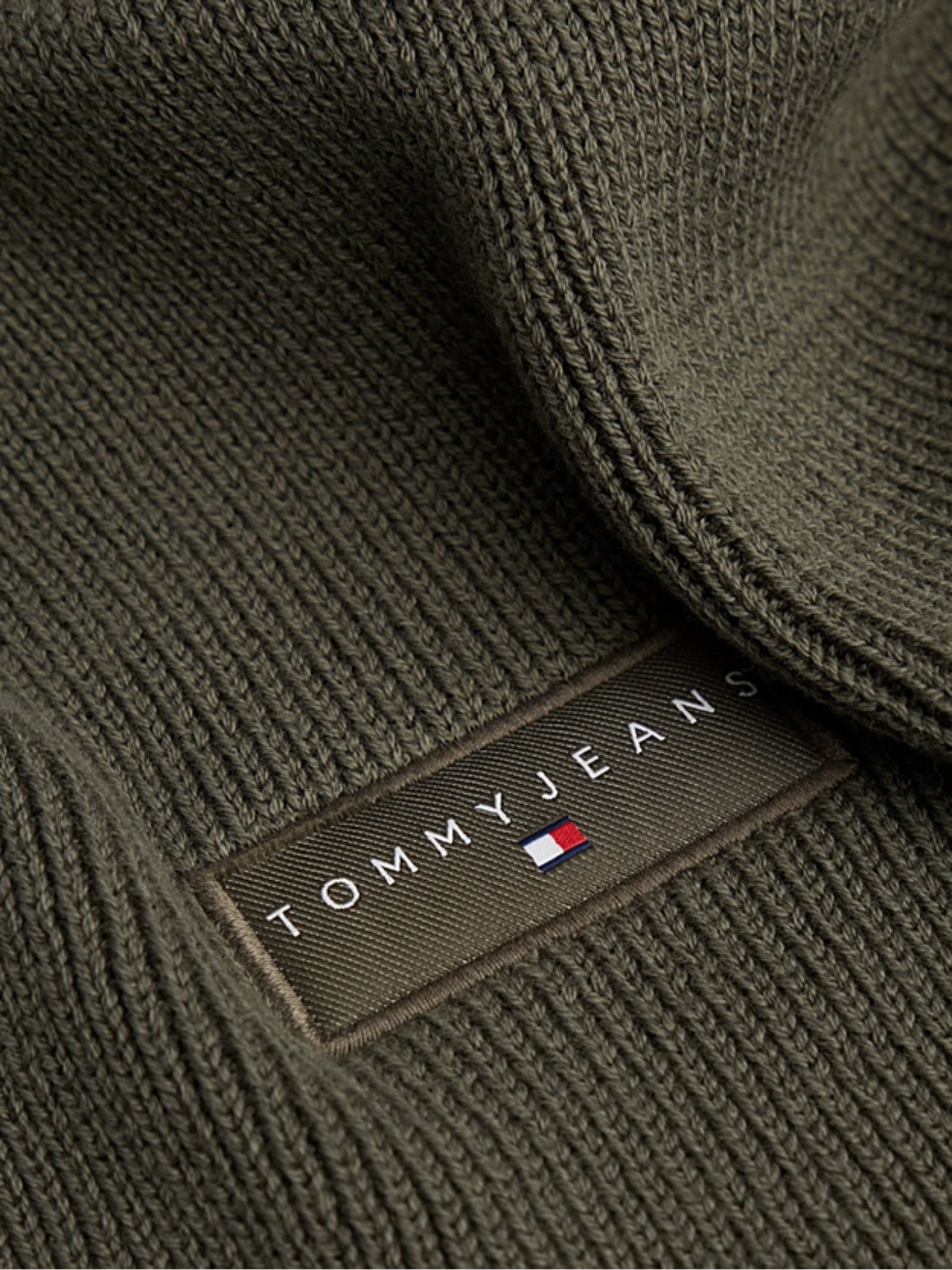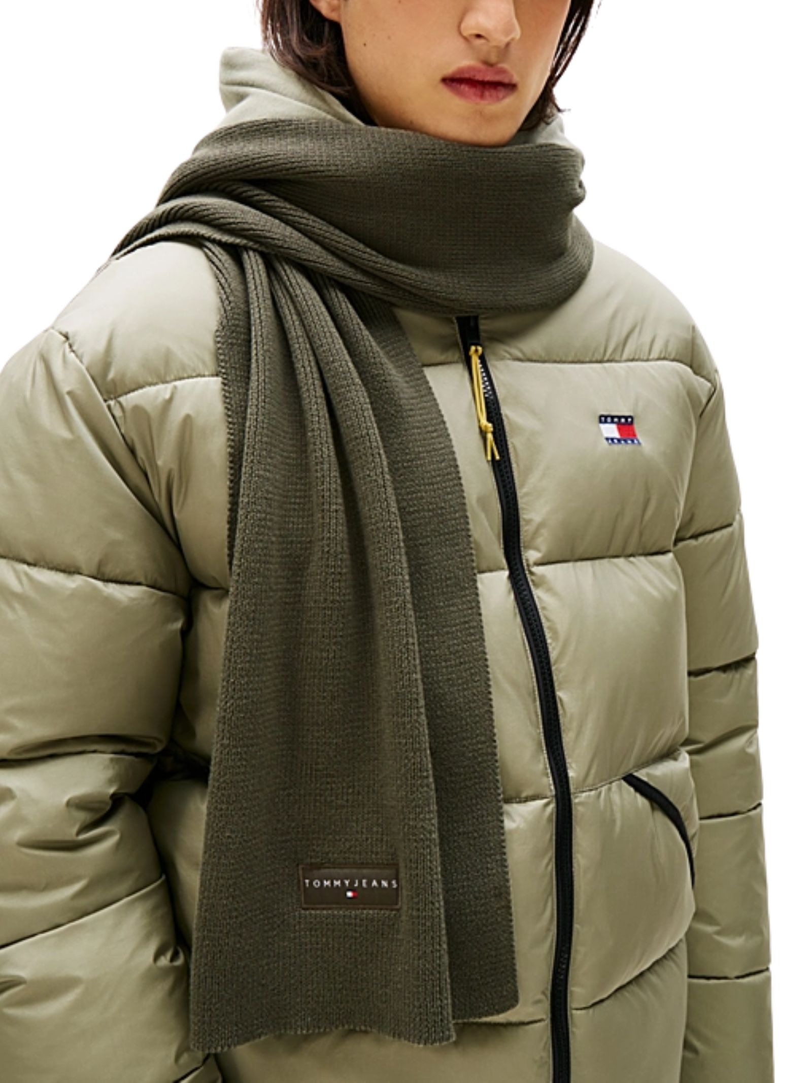 Sciarpa verde in maglia di puro cotone con logo lineare Tommy Jeans sul bordo, confortevole e raffinata, realizzata al 100% in cotone.