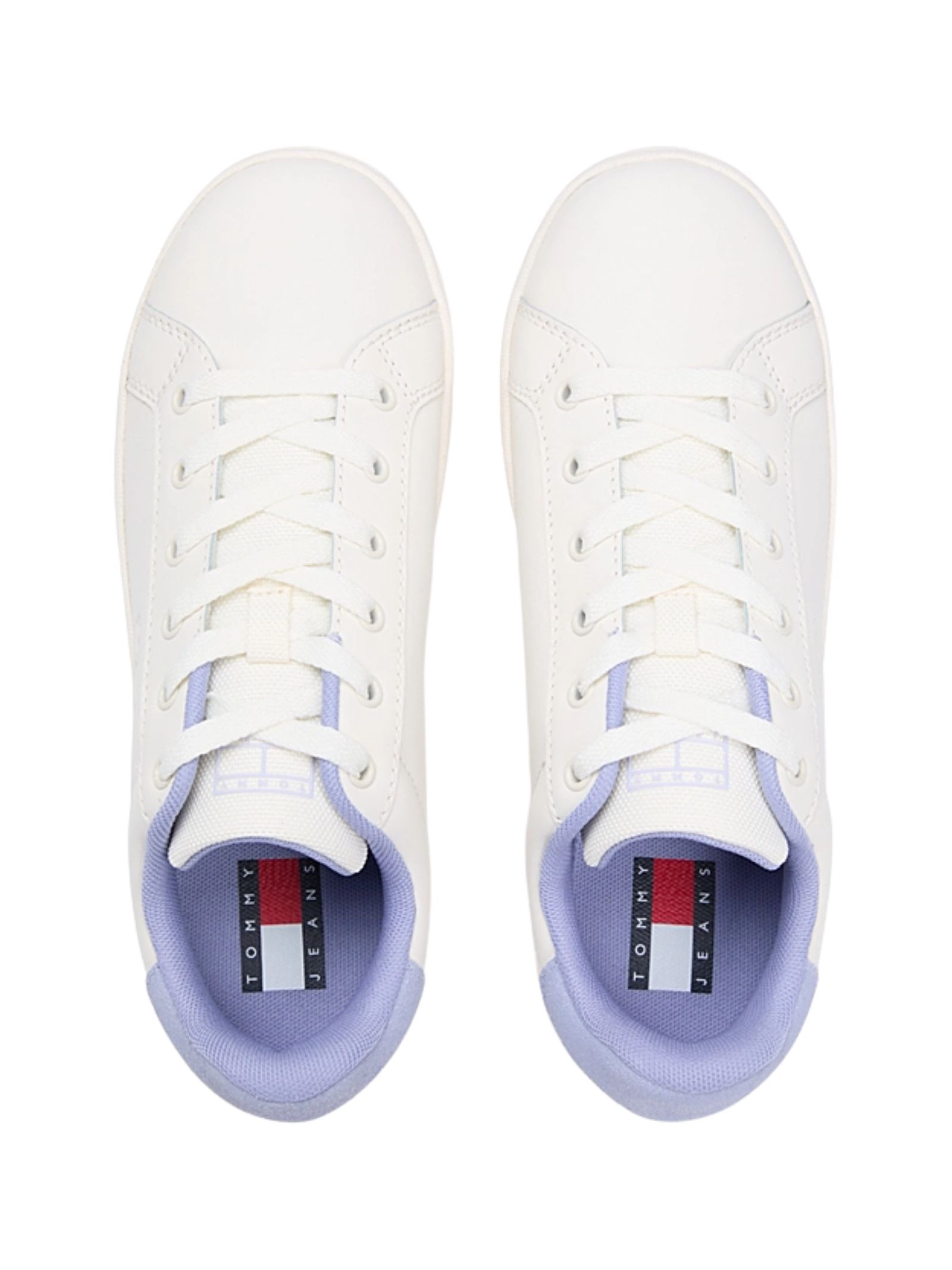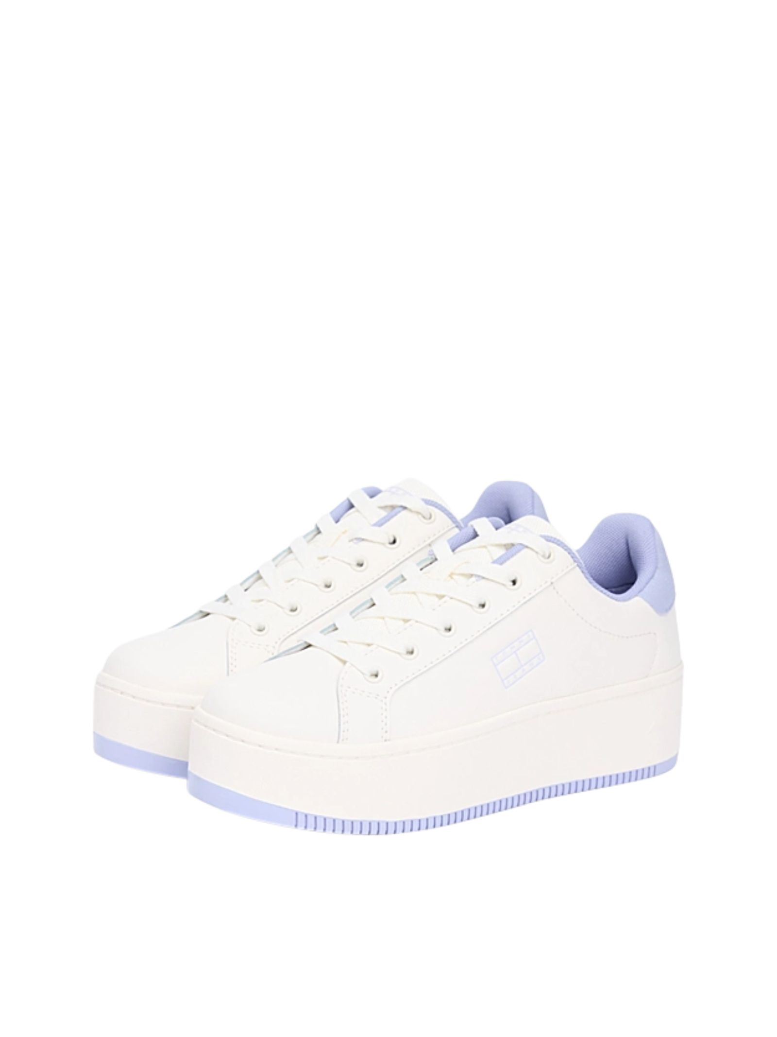 Sneakers basse Tommy Jeans dallo stile urbano realizzate in un mix di pelle e materiali sintetici, con design stringato e plateau che aggiunge carattere al look, arricchite da sezione posteriore a contrasto, distintivo Tommy impresso sul lato e logo Tommy Jeans in rilievo sul retro, completate da suola in gomma antiscivolo e soletta interna rimovibile per un comfort quotidiano. Composizione: 90% pelle, 10% poliuretano.