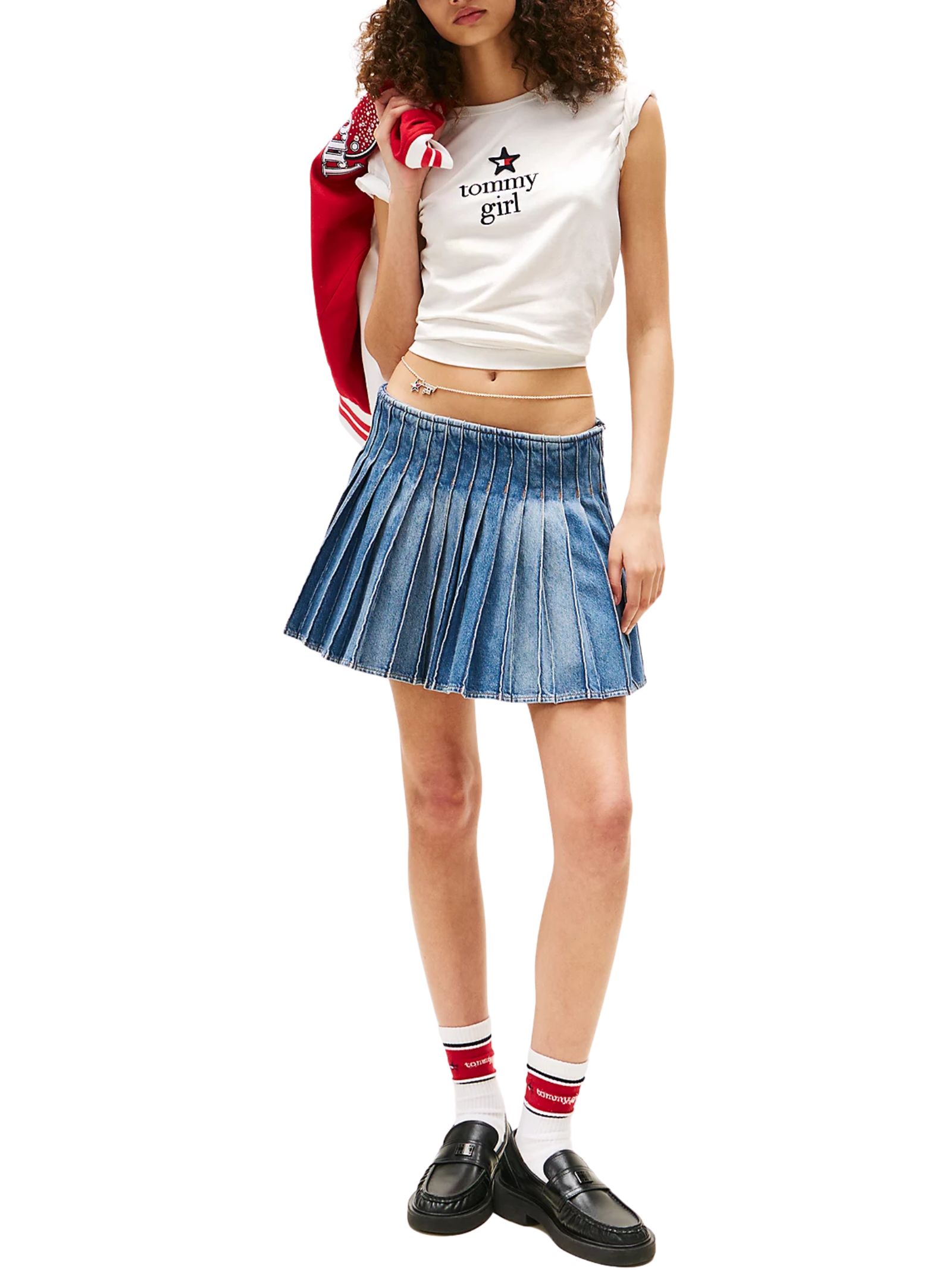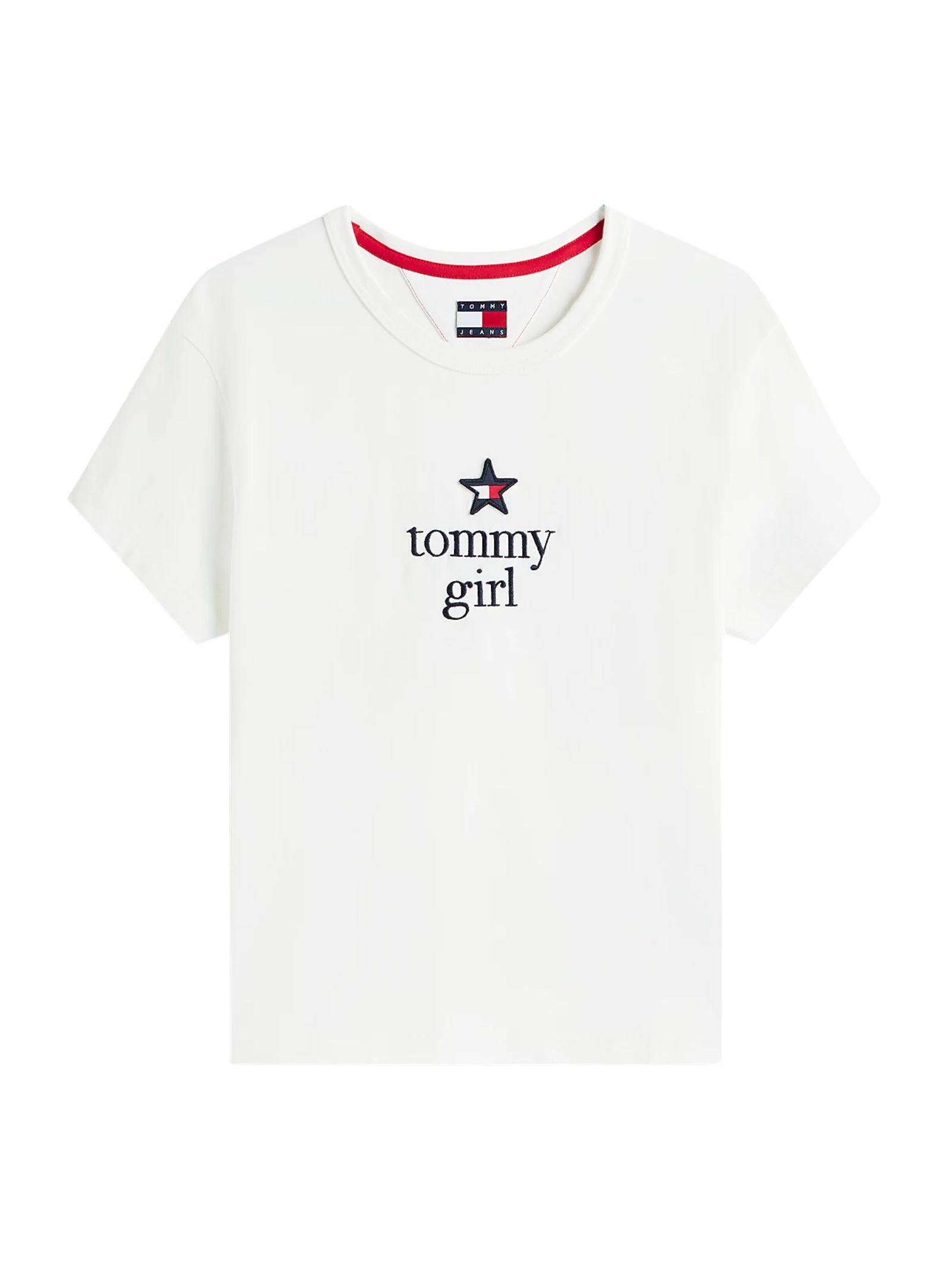 Modello girocollo con collo a coste e grafica Tommy Girl sul petto. Spalle leggermente scese e vestibilità regular fit. 95% cotone, 5% elastane.