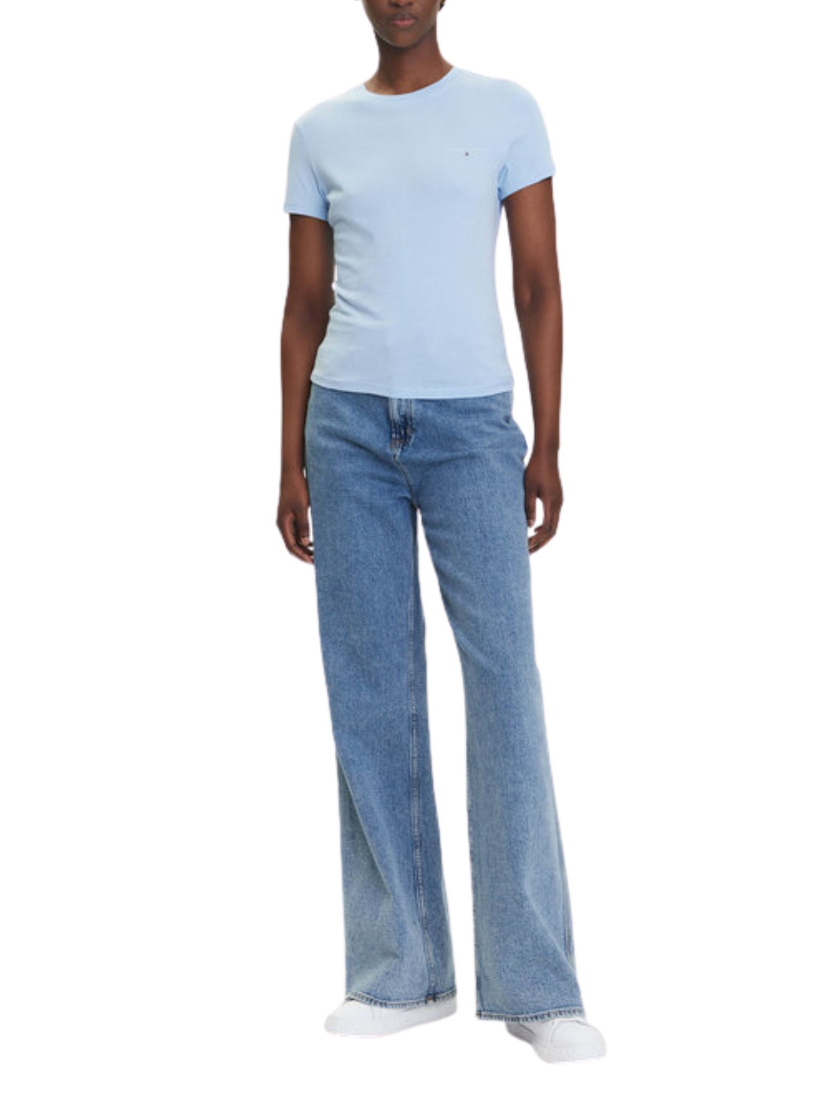 Modello girocollo con logo Tommy Jeans stampato sul petto, manica corta. Vestibilità slim fit, 100% cotone.