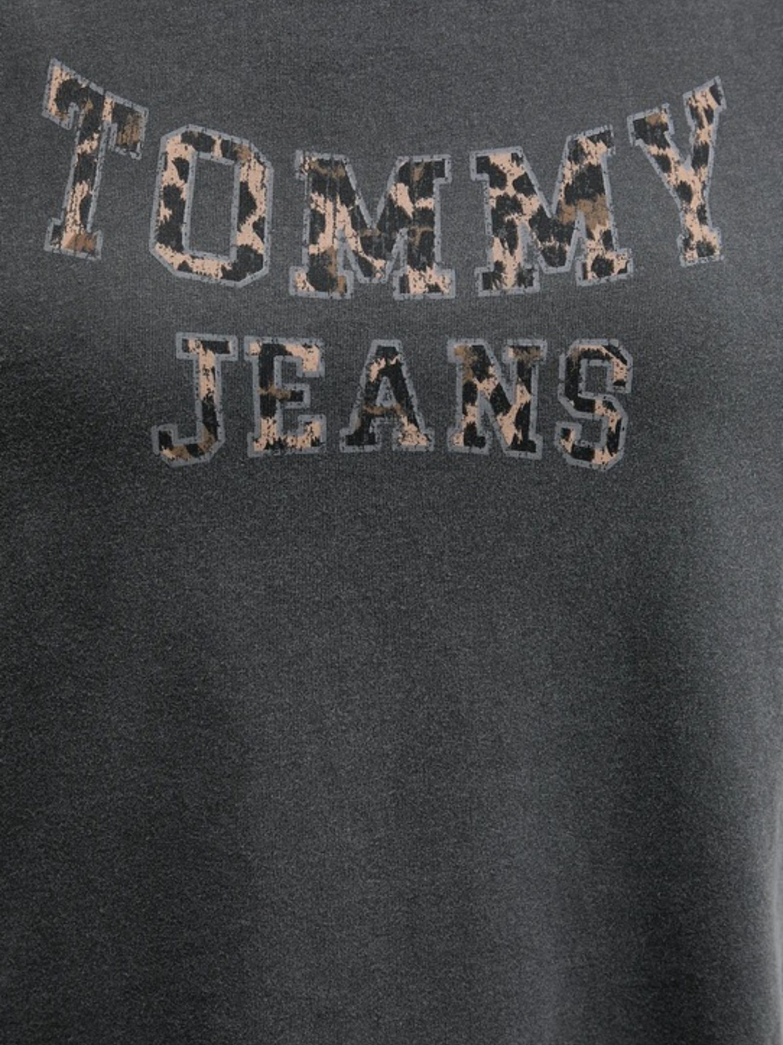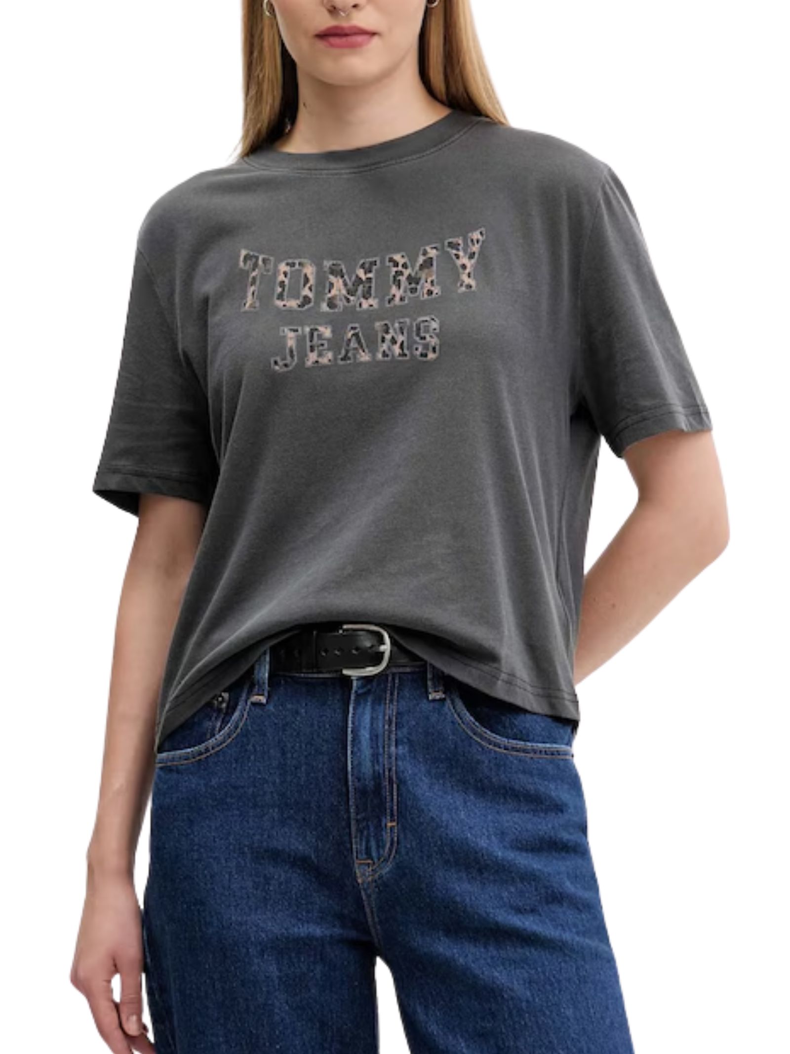 T shirt tommy jeans con logo leopardato. Taglio corto boxy fit. 100% cotone