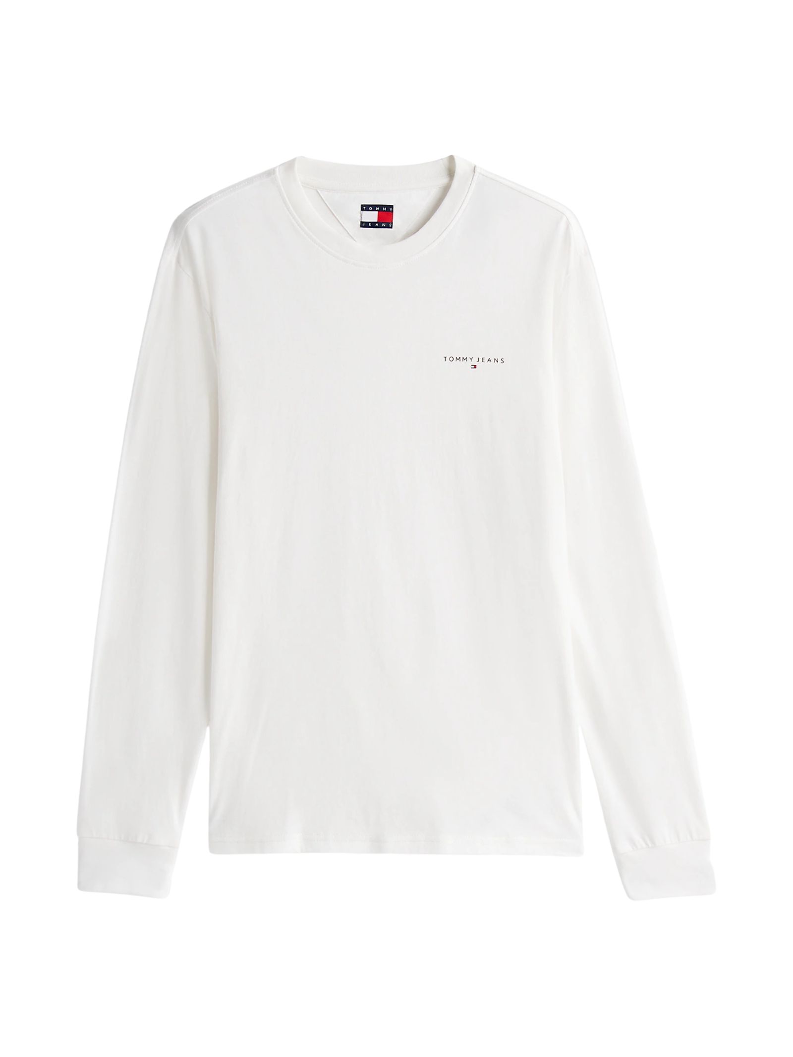 T-shirt Tommy Jeans in jersey di puro cotone a maniche lunghe. Logo Tommy Jeans lineare sul petto. Tgalio slim fit. 100%cotone