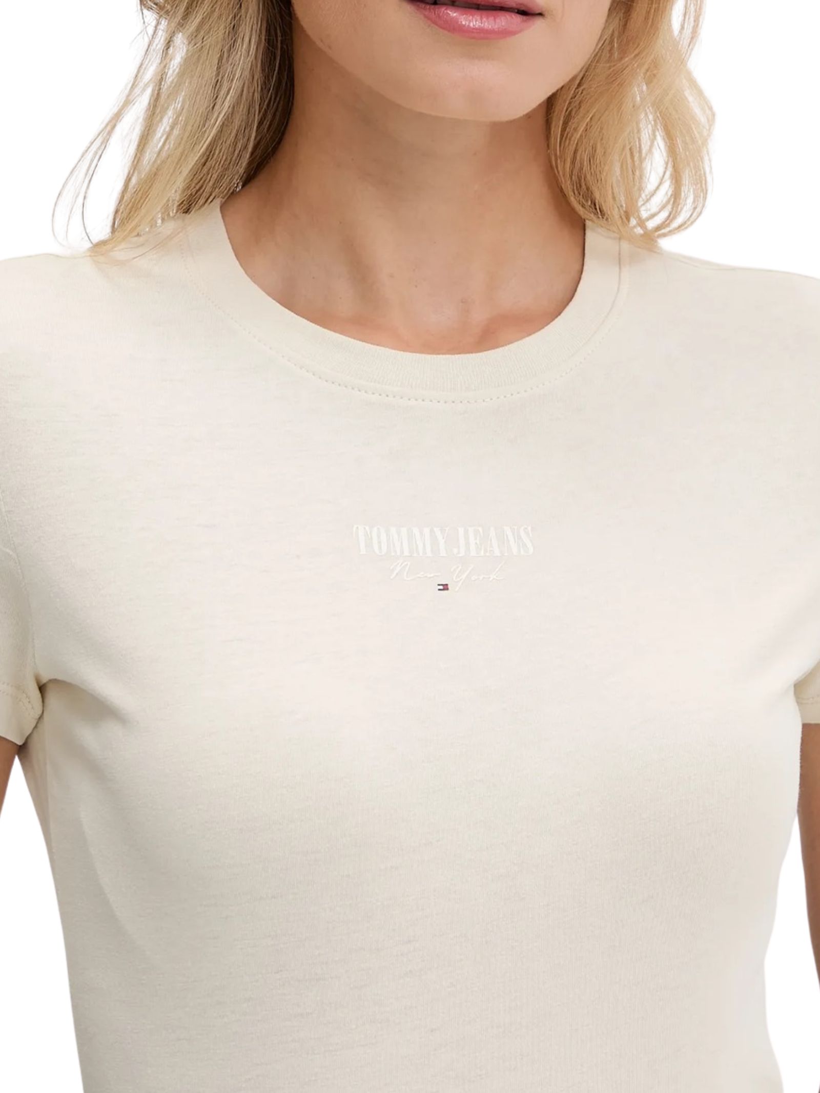 Modello con logo vintage Tommy Jeans sul petto, manica corta, vestibilità slim fit. 70% cotone, 30% viscosa.