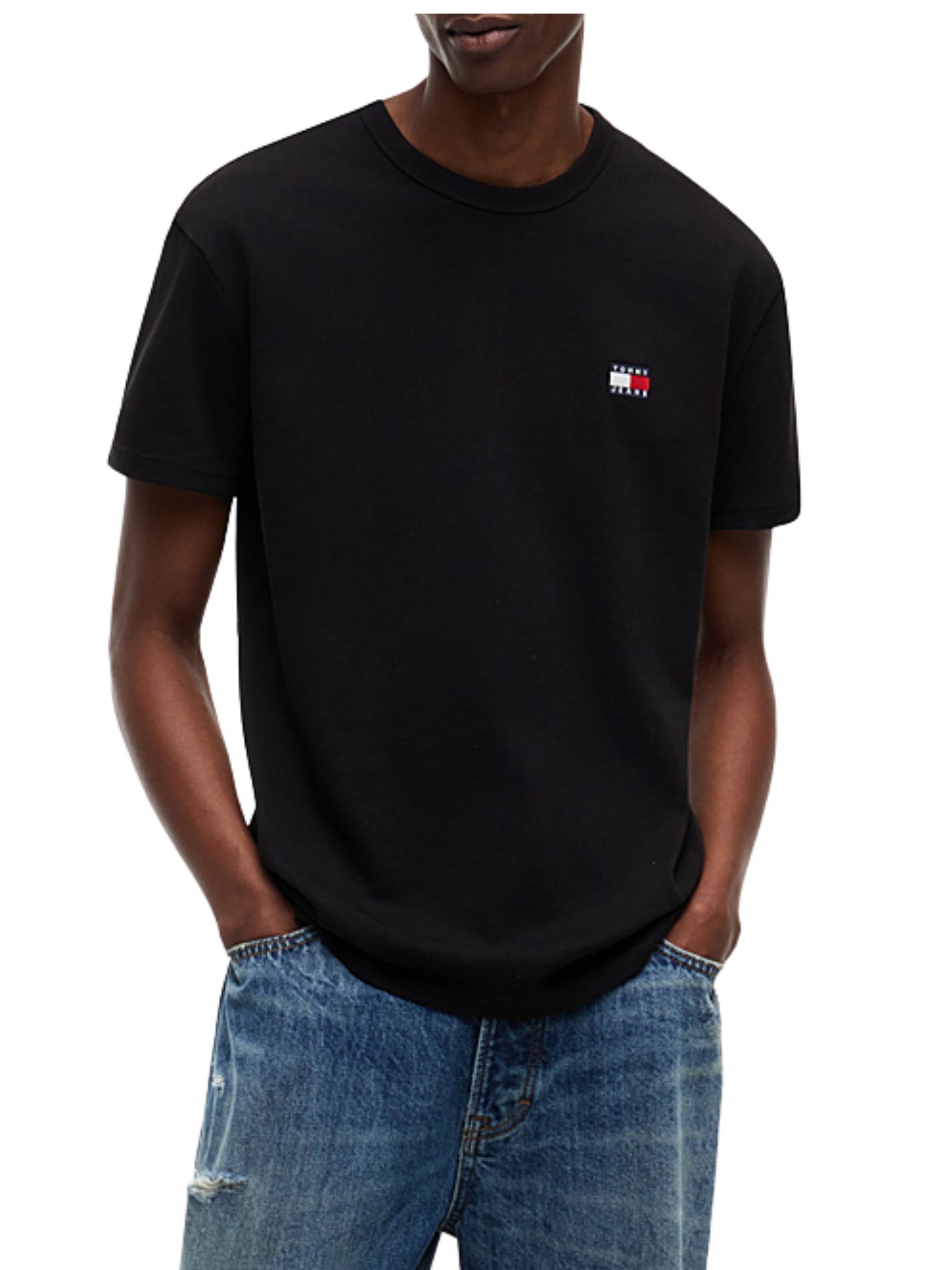 T-shirt in jersey di puro cotone, regular fit, con girocollo e distintivo Tommy sul petto, perfetta per aggiungere un tocco iconico e quotidiano ai tuoi outfit. Composizione: 100% cotone.